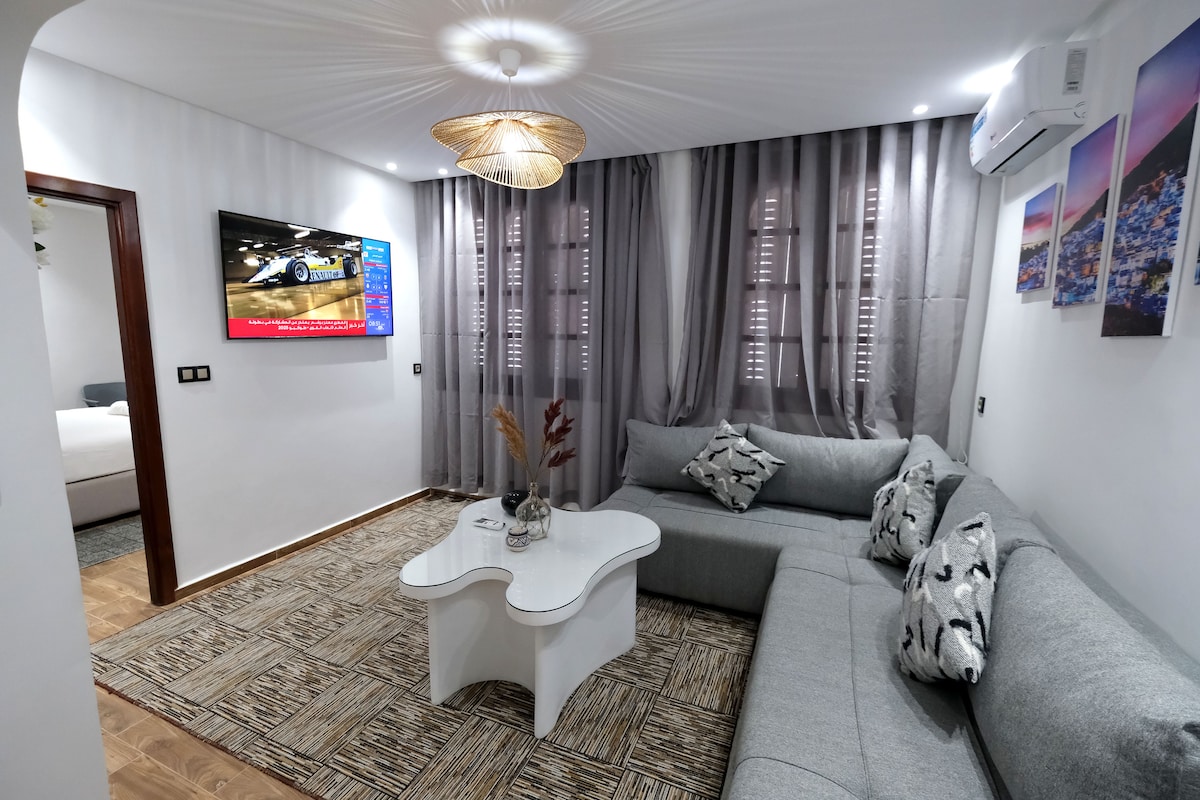 Konfor ve doğal güzelliğin mükemmel bir karışımını sunan, Chefchaouen'in göbeğindeki büyüleyici dairemize kaçın. Bu rahat inziva, modern olanaklar ve otantik Fas dokunuşlarıyla güzelce dekore edilmiş bir yaşam alanına sahiptir. Konforlu yatak odasında dinlenin ve Rif Dağları'nın nefes kesici manzarasına uyanın. Çiftler, aileler veya yalnız seyahat edenler için idealdir. Dairemiz, büyüleyici mavi şehirde unutulmaz bir konaklama vaat ediyor. Kaçış noktanız için bugün rezervasyon yapın!