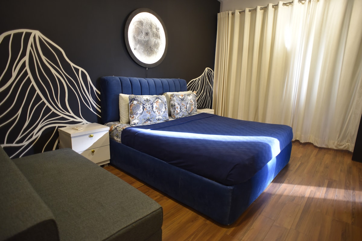 The Aura Stays'e hoş geldiniz. Ev gibi ama daha iyi. King boy yatak, deri koltuklar, Netflix'li akıllı TV ve hızlı kablosuz internet bağlantısı olan modern, rahat stüdyo daire. Çarpıcı bir pencere manzarasının, yumuşak aydınlatmanın ve zarif dekorasyonun tadını çıkarın. Su ısıtıcılı kompakt bir küçük mutfak ve temiz, modern bir banyo içerir. Bahria Town'ın göbeğinde güvenli bir binada yer alır; kafelere, parklara ve simgelere yakındır. Tek başına seyahat edenler, evli çiftler veya iş amaçlı konaklamalar için mükemmeldir. Rahatlık, şıklık ve huzur için şimdi rezervasyon yapın.