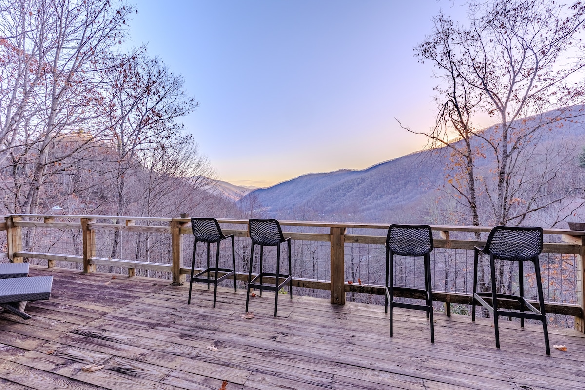 2020 yılında inşa edilen bu özel ev, dinlenmek için mükemmel bir yer. Özel bir yolun dışında (4 tekerli çekiş gerekli değildir), 4,25 dönümlük bir alanda, Büyük Dumanlı Dağlar'ın muhteşem manzarasına sahiptir. Oraya vardığınızda, kendinizi gerçekten dünyadan kopmuş hissediyorsunuz. Modern, İskandinav-Japon tasarımı bölgeye özgüdür. İçerik: ana yatak odası, çatı katı (queen boy şilte ve özel Twin XL ranza yataklar); açık mutfak/yaşam alanı, kapalı ve açık verandalar. Bryson City ve Cherokee'ye 10 dakikalık mesafede.
