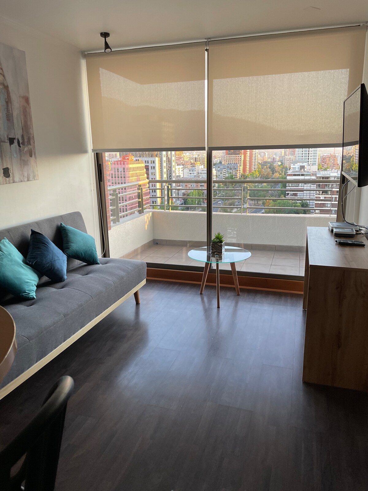 Yüksek katta, kapalı teraslı, dağ sırasına panoramik manzaralı, ısıtmalı havuzlu, spor salonlu ve otoparklı, Parque Arauco Alışveriş Merkezi ve Clínica Alemana'ya birkaç adım uzaklıkta modern daire. İş veya romantik kaçamaklar için harika.