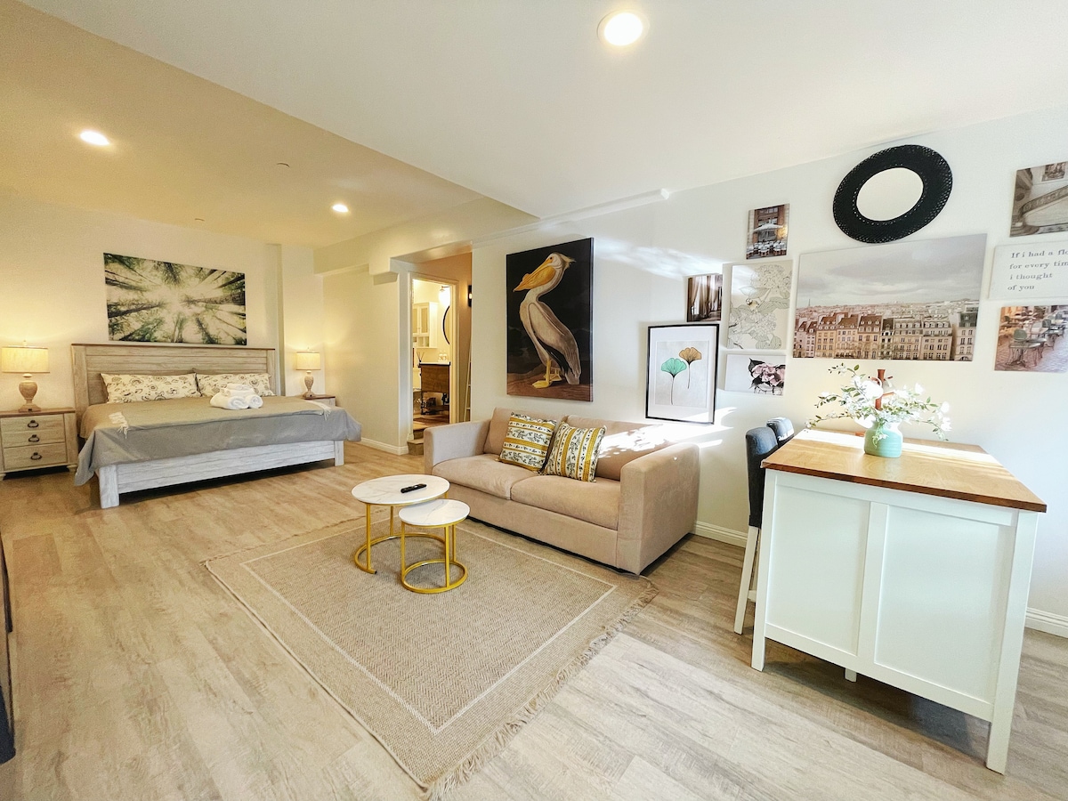 Walnut City'de güzel bahçe stüdyo daire, yeni yenilenmiş ve özenle tasarlanmış! Bağımsız giriş, mutfak, çamaşır makinesi/kurutucu ve 65 inç akıllı TV! Sessiz bir yerleşim alanında bulunmaktadır. Küçük bir aile veya bir çift için mükemmeldir.