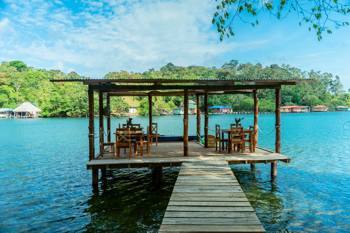 Sürdürülebilir Bocas yaşam tarzının tadını çıkararak yaşamak, çalışmak ve eviniz olarak adlandırabileceğiniz sakin bir yer. Hasat ayrıcalıkları dâhil. Dijital göçebeler ve doğaseverler arasında popüler. Bu sahil bungalovunun salon/ofis/yüzme merdiveni/şnorkelle dalış/yüzme alanına sahip özel bir su üstü rançosu vardır. Doğa severler, yoga/yıldızlar/yazarlar/dijital göçebeler için ideal. Bungalovda deniz manzaralı Queen yatak, tuvalet/lavabo/duşlu banyo vardır. Ocak/fırın/lavabo/tencere/buzdolabı olan mutfak. Starlink wifi. Sessiz zaman 20:00-08:00