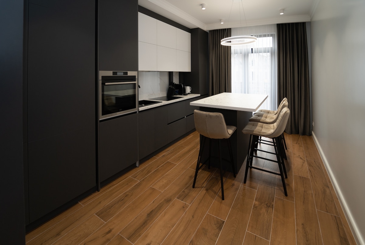 Yeni Yenilenmiş ve Modern! İlk Misafir Siz Olun! Şehrin tam göbeğinde şık bir konaklama deneyimi yaşayın. Katedral, ana yaya caddesi, merkez park ve Büyük Millet Meydanı'na sadece 5 dakika yürüme mesafesindedir. Bu, ayrı, tam donanımlı bir mutfağa sahip, tek yatak odalı tam bir dairedir. - Mükemmel bir gece uykusu için devasa bir çift kişilik büyük yatağın keyfini çıkarın. - Yüksek hızlı Wi-Fi ve sabit Ethernet (LAN) bağlantısı olan özel çalışma alanı, uzaktan çalışma için idealdir.