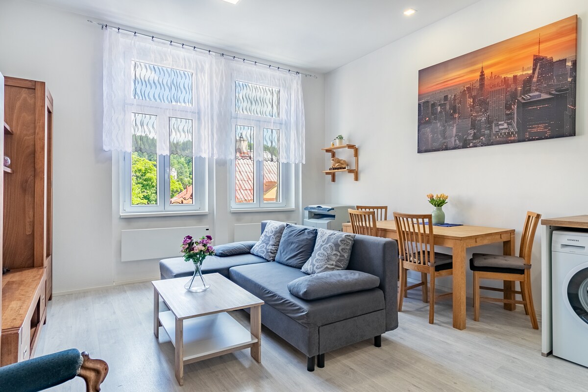 2 'de tamamen yenilenmiş bir daire sunuyoruz. Spa kasabasının merkezinde, küçük bir koloni ile NP. Buradan Mariánské Lázně'nin merkezindeki en yakın kafelere, restoranlara ve dükkanlara 5 dakikalık yürüyüş mesafesinde ulaşabilirsiniz. Spa parkları kelimenin tam anlamıyla köşede, sabah yürüyüşü veya dinlenmek için mükemmel. 20 dakikalık rahat bir yürüyüşle, Şarkı Söyleyen Çeşme ve şifalı kaynaklarla ünlü sütunlu yapıya ulaşacaksınız.🌳⛲ İhtiyacınız olan her şey arabaya ihtiyaç duymadan mevcuttur; her şeye kolayca ulaşılabilir.