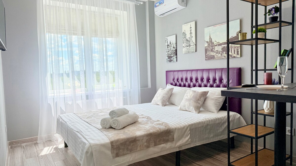 Tren istasyonu yakınında modern daireler Harkov'un merkezinde rahat bir yer. Seyahatseverler, şehir misafirleri ve iş seyahatleri için ideal bir yer. Geniş stüdyo keyifli bir konaklama için ihtiyacınız olan her şeye sahiptir: ✔️ Konforlu çift kişilik çekyat ✔️ Yemek pişirmek için her şeyin olduğu mutfak alanı. Sıcak su bulunan✔️ modern banyo. ✔️ Çamaşır makinesi ✔️ Ücretsiz kablosuz internet bağlantısı ve klima. Yakınında metro, mağazalar, kafeler, alışveriş merkezleri ve uygun bir ulaşım aktarması vardır. Giriş yapın ve kendinizi evinizde gibi hissedin!