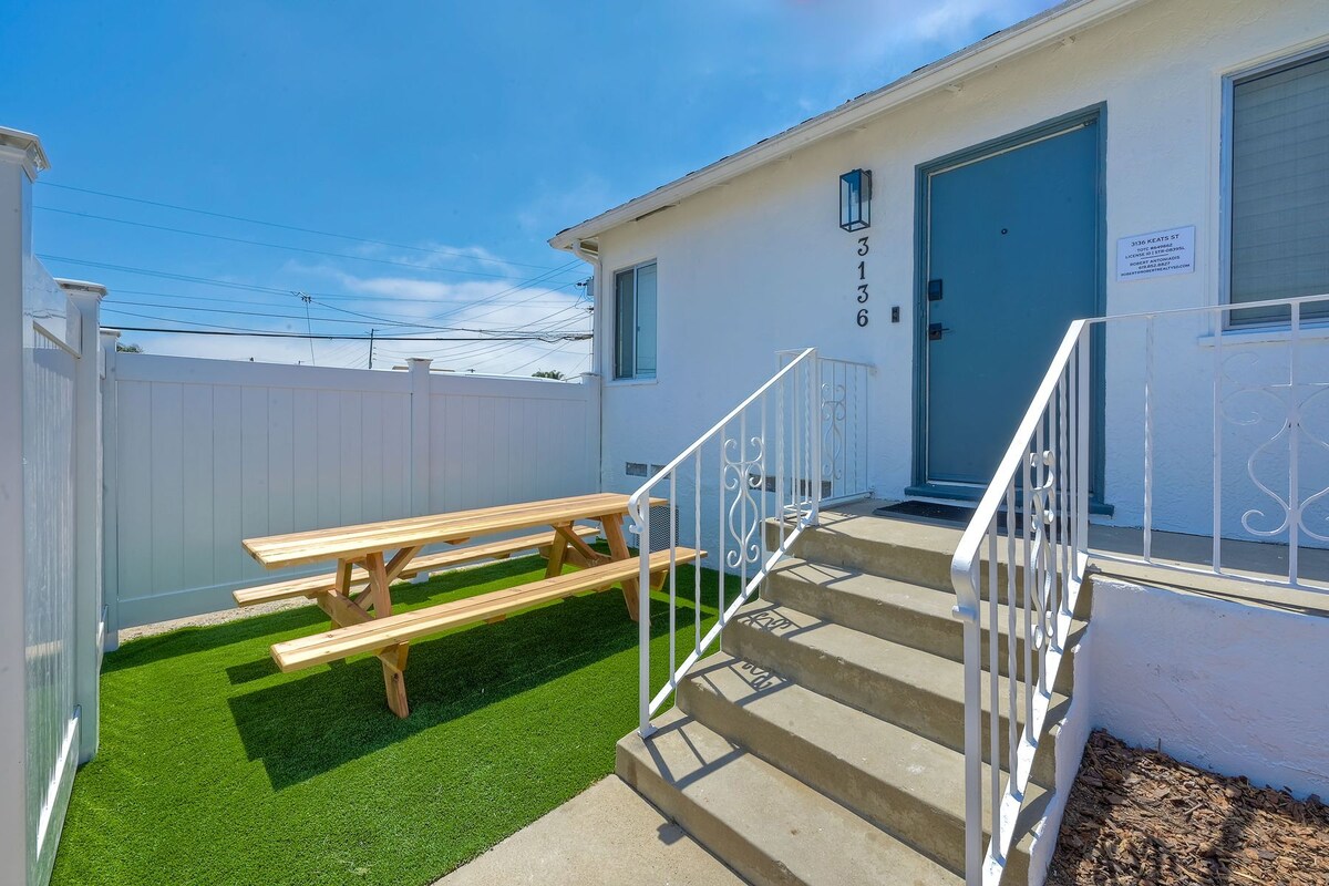San Diego şehir merkezinin kenarındaki tarihi bir bölgede bulunan büyüleyici, tamamen yenilenmiş kır evi. Burası güvenli, sessiz ve tarihi bir semt. Turistik bir bölge değil. Çoğu misafir araba kullanır veya araç paylaşır. Sokak dışında sizin için bir park yeri var. Yakın birkaç blokta kahve dükkanı veya restoran yok.