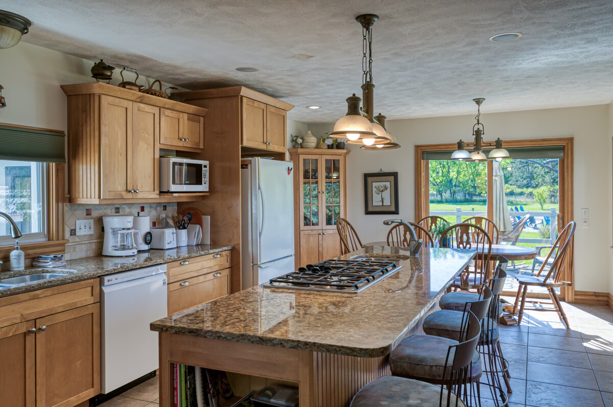 4 kişi kalabilir. Değerlendirme. "Kasabaya geldiğimde burası benim yeni favori yerim. Gölün manzarası çok güzel ve çok temiz ve sessiz. Tekrar gelmek için sabırsızlanıyorum." 4th Overlook, özel jakuzili özel bir dış teras alanı ve özel bir gölün muhteşem manzarasıyla moderndir. Çok sayıda aktiviteye ve harika restoranlara yakın. * Jakuzi *Komple mutfak. *Özel çamaşırhane * Akıllı TV/Netflix ile *80+ Mbps fiber optik kablosuz internet bağlantısı. *Kahve, krema, şeker dahil * Traverse City dışında. * Sleeping Bear Dunes'a 34 mil