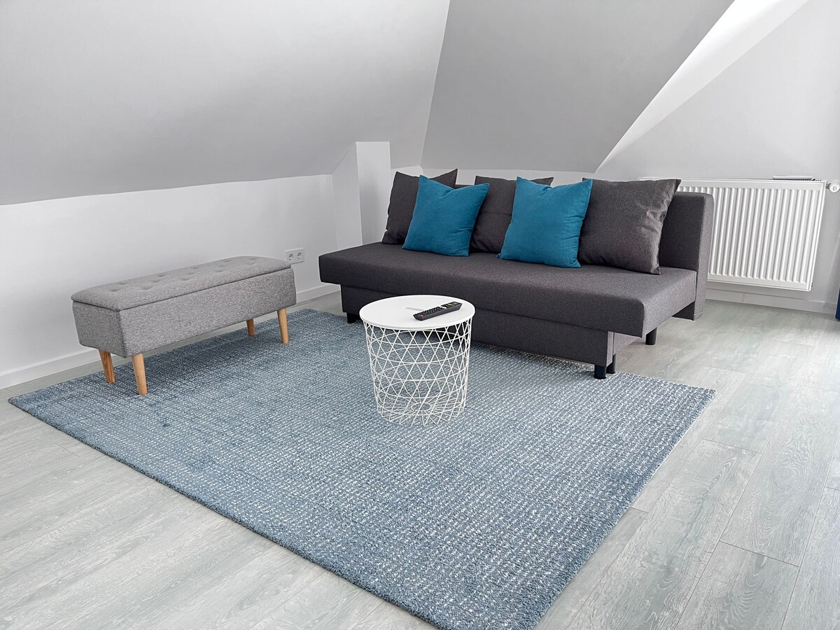 Whether you choose to travel for business or as a tourist our apartment is ideal for your stay. Top roof appartment in Toscana Residence located at 10-minutes drive from Henry Coanda International Airport and just 15 minutes from the Spa Therme center. Many shops as Liddl, Mega Image are right round the corner, restaurant and farmacy are situated as well in the complex.