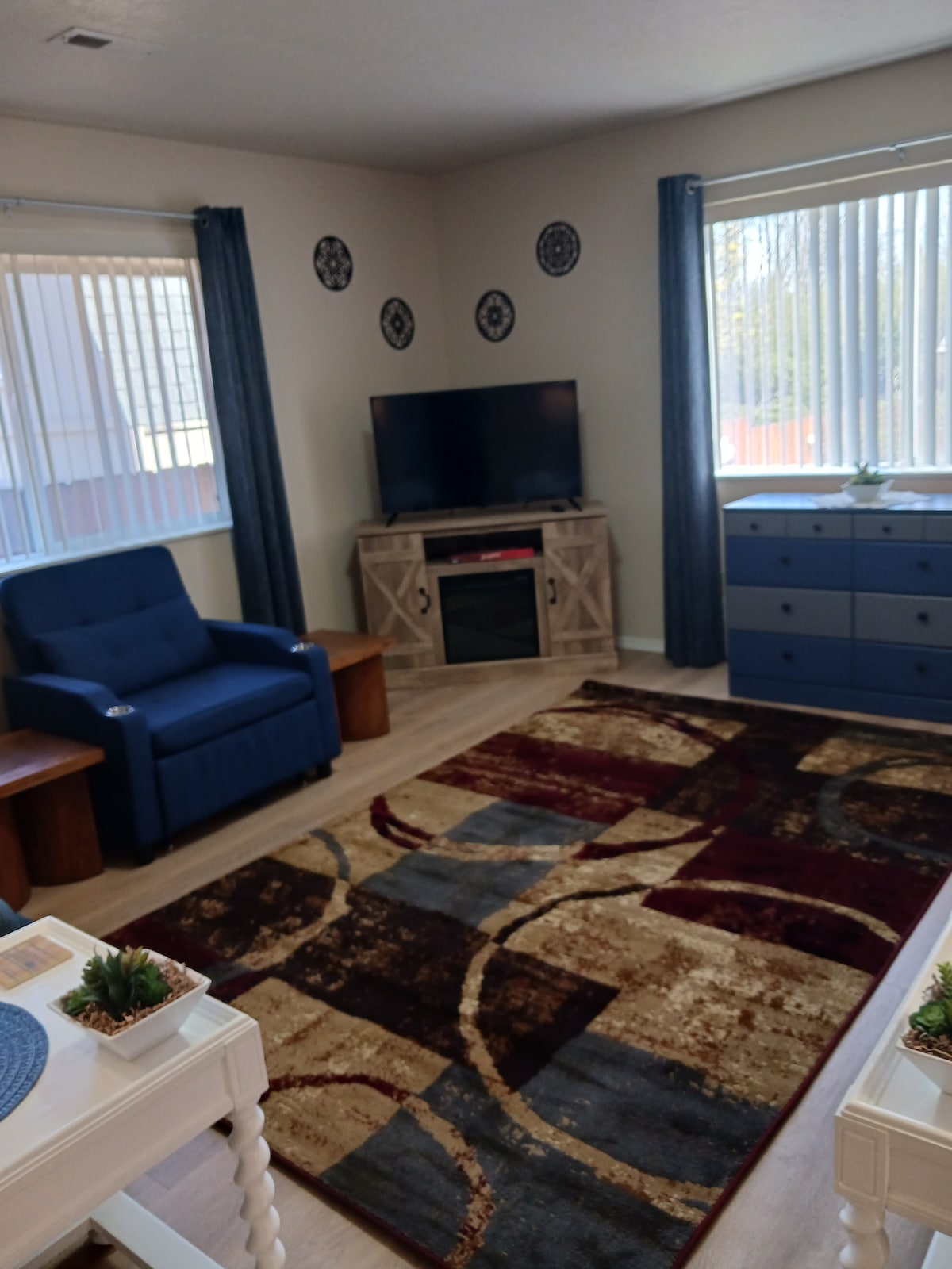 Bu rahat birim, bir oturma odası, ayrı bir yatak odası, duşlu bir banyo ve küçük bir küçük mutfak /çamaşır odası (soğuk su) içeren iki katlı bir evin alt katında bulunan dönüştürülmüş bir dinlenme odasıdır. Küçük mutfakta mikrodalga fırın, ekmek kızartma makinesi fırını, elektrikli ocak, cezve, mutfak gereçleri ve buzdolabı bulunmaktadır. Ünite anahtarla kilitlenebilir. Giriş için ADIMLAR gereklidir. Hareket kabiliyeti sorunu olan misafirler için önerilmez. Ekstra misafirlerden günlük 5 ABD doları tahsil edilir. İçeride sigara içilmez/elektronik sigara içilmez.