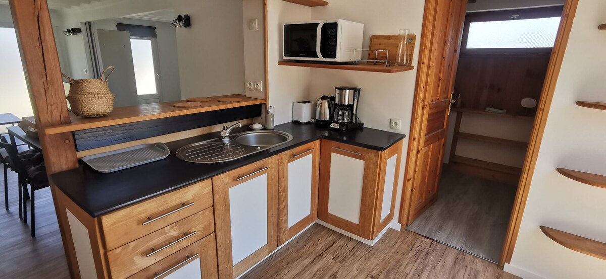 Kendi evimizin arazisinde bulunan bir stüdyo şeklinde, tarafımızdan yenilenmiş küçük dostane bir ev. - Konaklama yeri Deauville veya Le Havre'den 1: 15, Rouen veya Honfleur'den 1 saat uzaklıkta, Evreux'ye yakın, Normandiya'yı ziyaret etmek veya kırsal kesimde dinlenmek için mükemmel bir üs. Ayrıca bir Paris kaçamağına 13: 30 'da varacağız. - Bizi yeşil yoldan 4 km ayırır (Evreux/Bec - Hellouin) - ev dahil