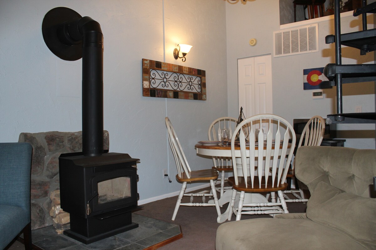 Bu 1 yatak odalı 1 banyolu rahat kır evi benzeri daire, Keystone'daki konaklamanız için mükemmeldir. Yüksek tavanları ve harika bir dekoru olan konforlu bir yaşam alanına adım atın. Oturma odasında gazlı şömine, düz ekran TV, queen boy yataklı kanepe ve propan ızgarası içeren özel balkona açılan cam kapılar bulunmaktadır. Tam donanımlı mutfakta lezzetli yemekler pişirmenin keyfini çıkarın ve masada 4 kişi oturarak oturun. Birincil yatak odasında queen boy yatak ve düz ekran TV bulunmaktadır.