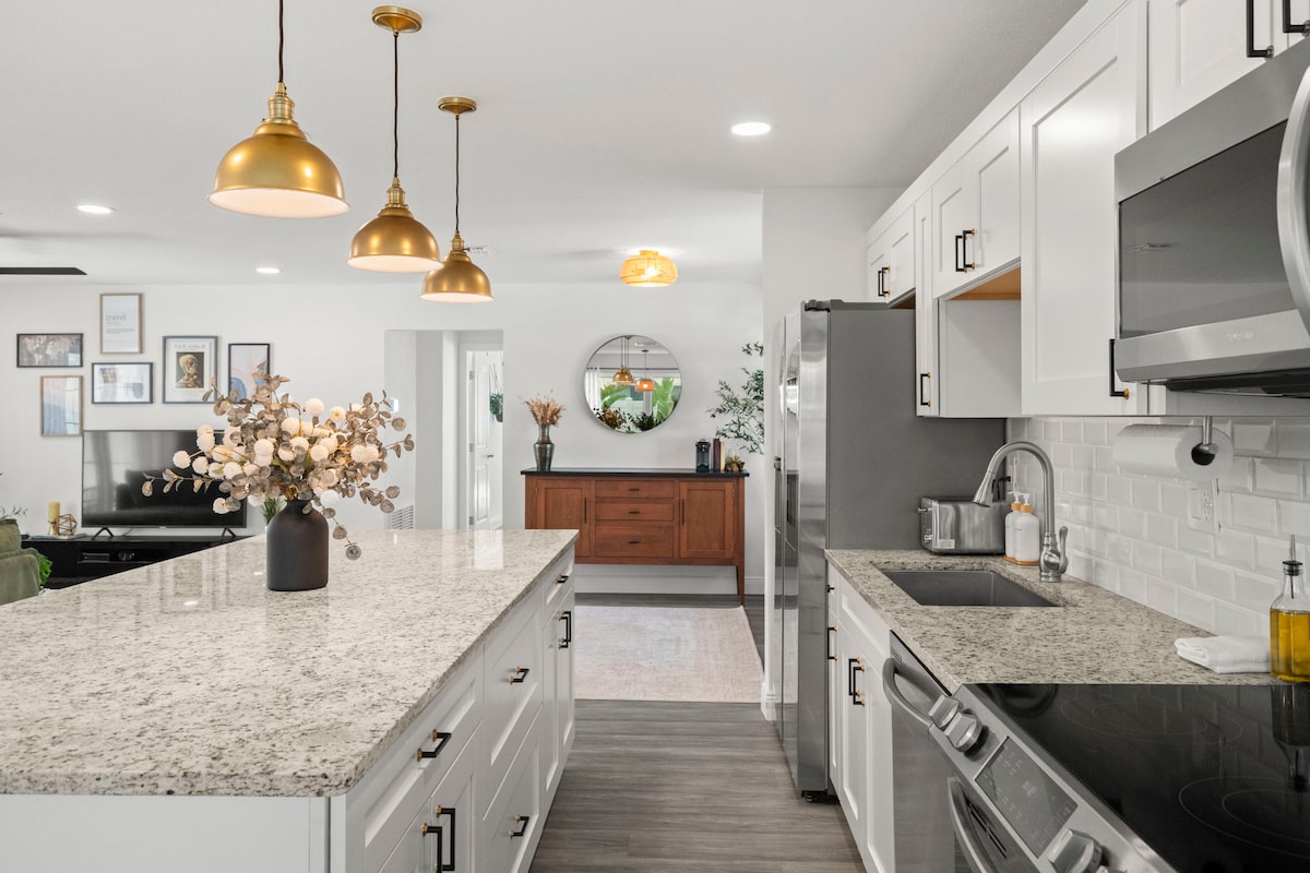 Alan, sakinlik ve günlük konfor için tasarlanmış 1 dönümlük özel modern bir evde konaklayın. Olgun meşe ve palmiye ağaçlarıyla çevrili bu sakin mekân, Tampa Havalimanı, Clearwater Beach, Safety Harbor, St. Pete ve en iyi turistik yerlere sadece birkaç dakikalık mesafede nadir bulunan mahremiyet sunuyor. Modern aletlere sahip şef mutfağının, geniş yaşam alanlarının ve verandası, elektrikli ızgarası ve koi havuzu olan huzurlu açık alanların keyfini çıkarın. Aileler, uzun süreli konaklamalar ve sessiz ve düşünceli tasarıma değer veren misafirler için idealdir!