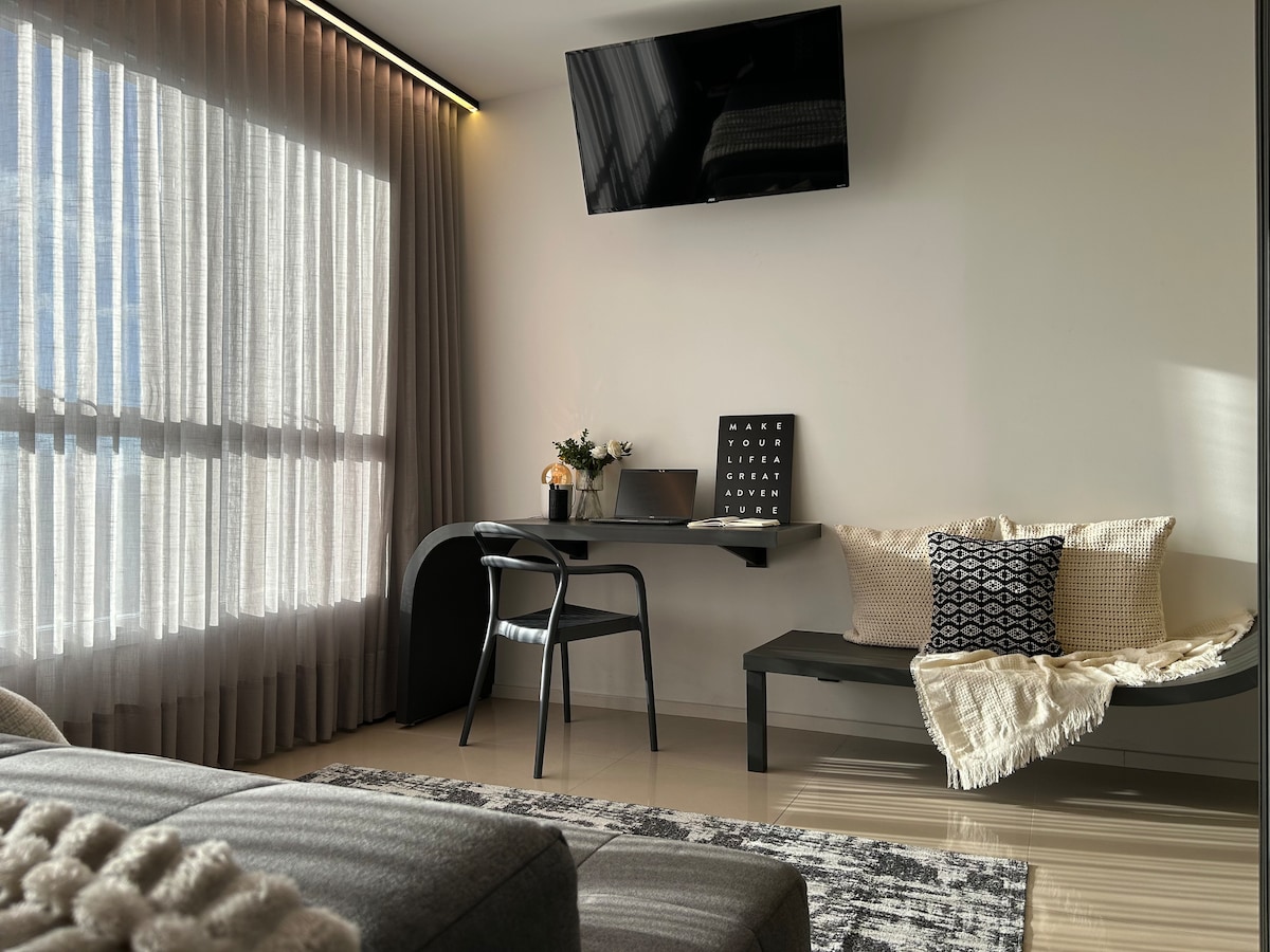 Her şeye yakın özel bir yer. Yeni, çok iyi dekore edilmiş, TV (Netflix), klima, çift kişilik queen yatak, çift kişilik çekyat, temiz ve yumuşak yatak takımı ve banyo, çamaşır makinesi/kurutucu, buzdolabı, soğutmalı su arıtıcı, ocak, inanılmaz manzaralı balkon, 1 garaj yeri. Bina yüksek standartlara sahiptir. Sonsuz kenarlı havuz, panoramik ve ısıtmalı manzara, hidromasaj, spor salonu ve çatı katında sauna - 40. kat. Temalı alanlar, çamaşırhane, squash kortu, bahçe.