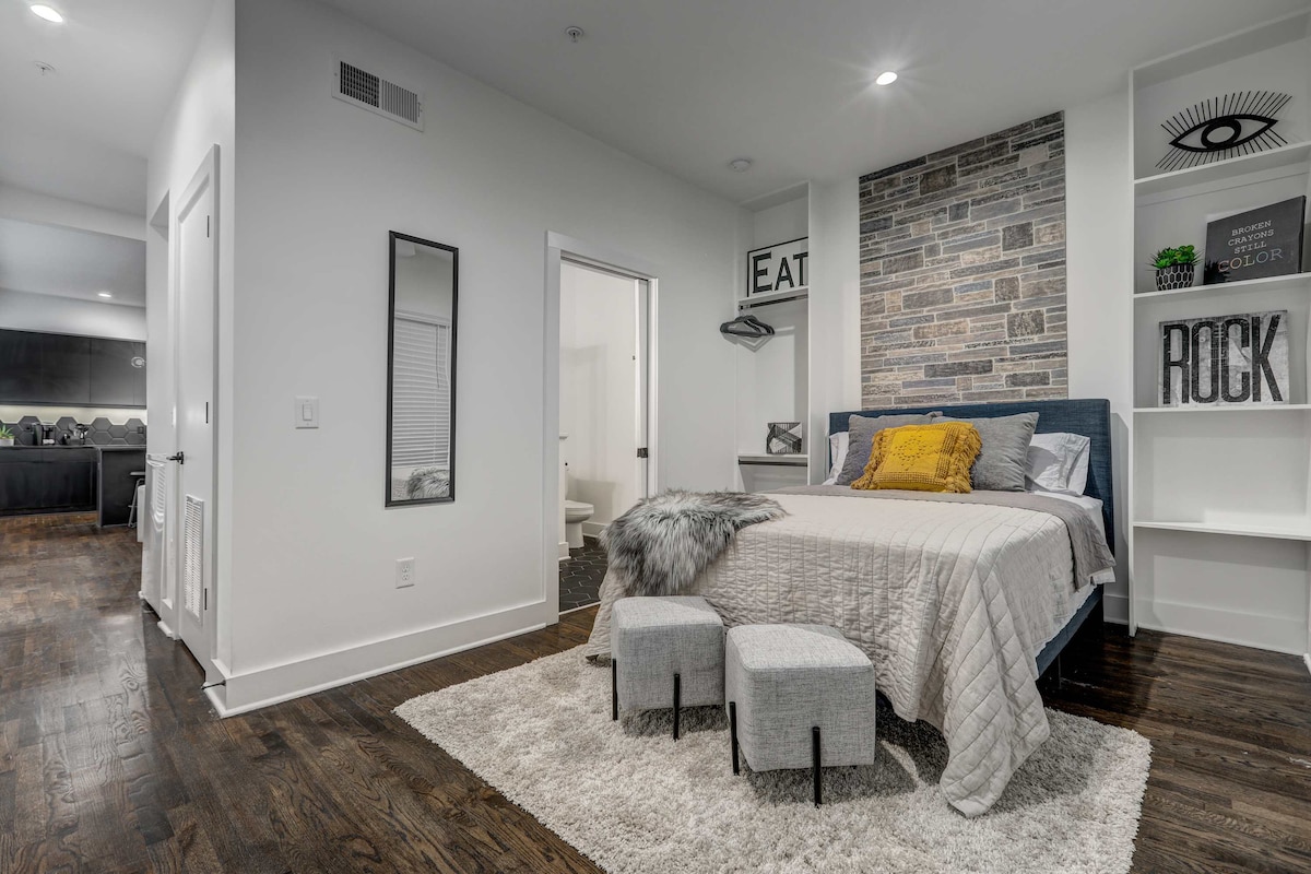 Bir kent simgesi binasında kurulan bu birimde sergilenen güneydoğudan gelen buluntu koleksiyonuna hayran olun. Modern çiftlik evi tarzında dekore edilmiş, cilalı ahşap zeminler ve paslanmaz çelik aletli bir mutfak öne çıkan özellikler arasında yer alıyor. Ünite 1B, engelli erişimi için giriş ve banyo düzenlemelerine sahip bir zemin kat ünitesidir. Mekân tamamen size ait olacaktır. Ve sokakta park yeri kapatılmış bir yer. Binanın toplam altı dairesi var. Christina'ya bir şeye ihtiyacınız olursa her zaman mesajla ulaşabilirsiniz. Bu merkezi konumdan Ponce City Market ve Beltline'a sadece birkaç blok ötede gezinin ve Piedmont Park'ta koşmak için caddenin aşağısına doğru gidin. Mary Mac's Tea Room, Pappi ve Bon - ton gibi tanınmış Atlanta restoranlarıyla karşılaşmak için caddeyi geçin. Woodruff otobüs hattındadır, iki Marta istasyonuna (Peachtree Center ve Midtown Arts) yakındır ve Uber her zaman 2 dakika mesafededir. Şehirde ayrıca Bird and Lime scooterlarının yanı sıra motorlu ve motorlu olmayan bisikletler de bulunmaktadır. Arabayla seyahat ediyorsanız, sokak dışında, kapalı tahsis edilmiş bir park yeriniz olacak. Rezervasyon başına yalnızca bir park yeri sağlayabiliriz. Binada toplam altı daire var. Kentsel sesler zaman zaman duyulabilir. Evcil hayvan kabul edilir, lütfen rezervasyondan önce sorun. Arabanız varsa binaya girmeniz için size bir anahtarlık ve elektronik kapı açacağı verilecektir. Her ikisi de kaybolursa 200 ABD doları tutarında bir değiştirme ücreti olacaktır.