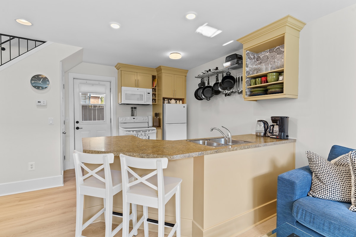 "The Sojourn" dairesi, John ve Sue tarafından konforunuz ve mahremiyetiniz göz önünde bulundurularak oluşturulmuştur. Tam mutfak, masa/çalışma alanı, çift kişilik yataklı yatak odası ve çift kişilik dolaplı konforlu, işlevsel bir alan. Akıllı TV (Netflix, Roku, Crave ve daha fazlası), elektrikli şömine, katlanır kanepe/çift kişilik yataklı oturma odası. Güçlü (Bell Fibe 1,5 gb) kablosuz internet bağlantısı. Cobourg'un sunduğu en iyi yerlere (Victoria Parkı ve Plajı, West Beach Boardwalk, dükkanlar ve restoranlar) kısa bir yürüyüş mesafesinde. Tesiste 1 araba için garaj yolu park yeri.