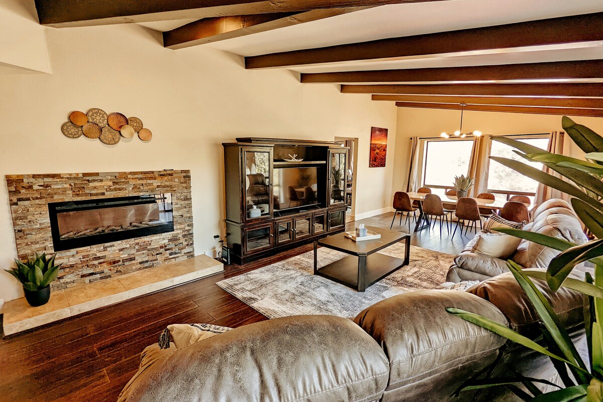 Bu sıcak Oak Creek Canyon inziva yerinde Sedona kaçamağınızın keyfini çıkarın. 3 yatak odalı, 3 banyolu mülk, uzun bir keşif gününden sonra aileniz veya arkadaş grubunuz için mükemmel bir ortam sağlar. Garaj, birden fazla oyun makinesi, pinpon, dart ve çok daha fazlasıyla bir oyun odasına dönüştürüldü! Egzersiz yapmak isteyenler için evde tam donanımlı bir spor salonu + peloton vardır. 3 ayrı verandadan muhteşem manzaraların keyfini çıkarın, büyük oturma odasının ve oturma odasına açılan şef mutfağının tadını çıkarın.