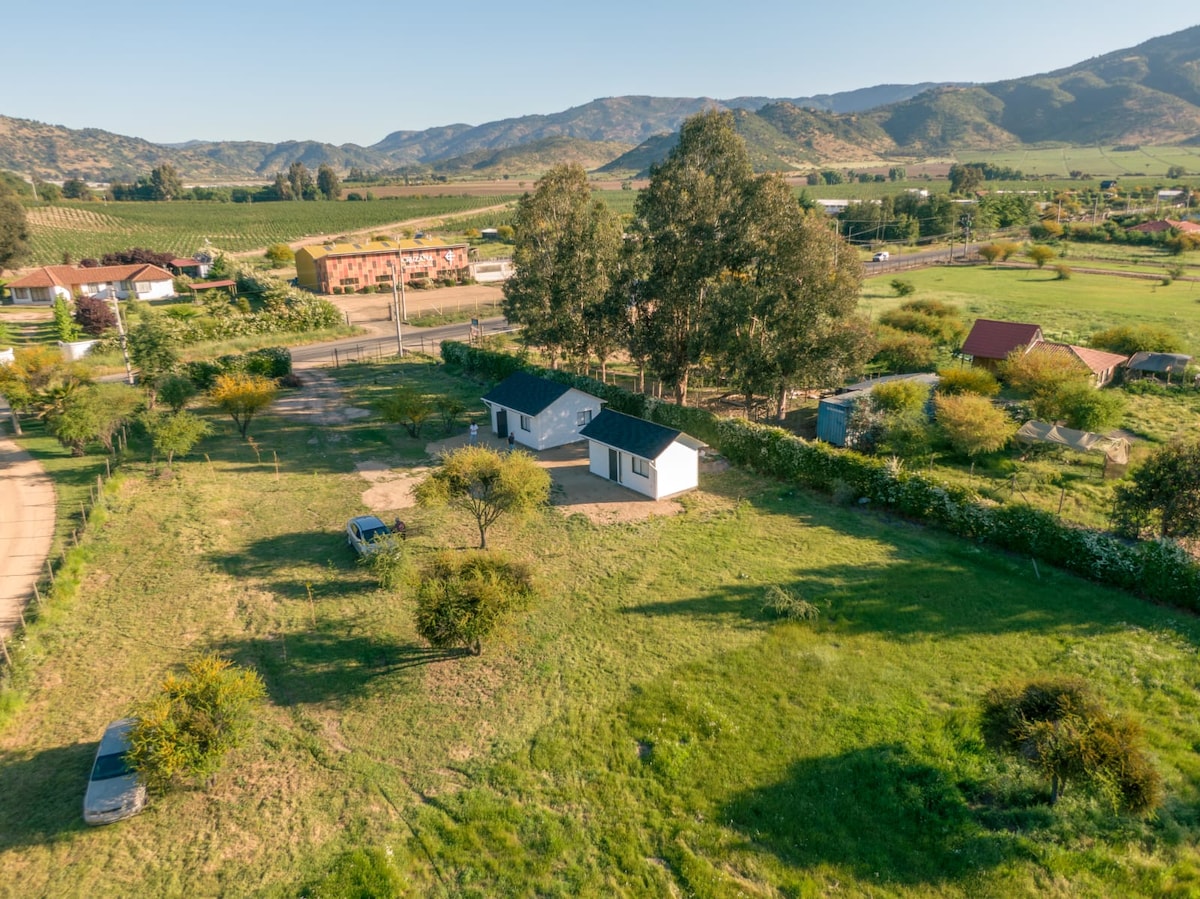 Cabañas para 4 personas con agua caliente. A 2 hrs de Santiago . Concepto, relajarse y desconectarse del trabajo y del ruido, por lo que TV es innecesaria. Tenemos: Juegos de madera para niños 2 camas elásticas 2 piscinas 1 hectárea de jardín 1 cerro Quincho para asado con mesa de ping pong y taca taca. Tinguiririca, un pueblito con gente buena, sencilla y tranquila. *Nota: la conexión a internet es inestable debido a un cerro, pero hay un sector con Starlink (antena saterlital).