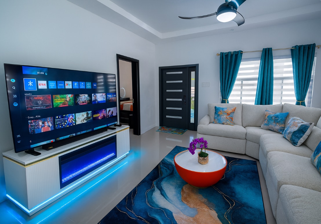 24 saat güvenlikli kapalı bir Jamaika topluluğundaki lüks evimiz, tenis kortu, spor salonu, ortak havuz, oyun alanı, klima, kablosuz internet bağlantısı, Netflix, YouTube, fırınlı elektrikli ocak, hava fritözü ve büyük bir buzdolabı/dondurucu gibi bir dizi ücretsiz olanak sunmaktadır. Tüm havaalanlarına merkezi konumda, Dunns River Falls/Dolphin Cove'a 10 dakika; Chukka & Plantation Cove'a 15 dakika ve Ocho Rios'taki plajlara arabayla 5 dakika mesafededir.
