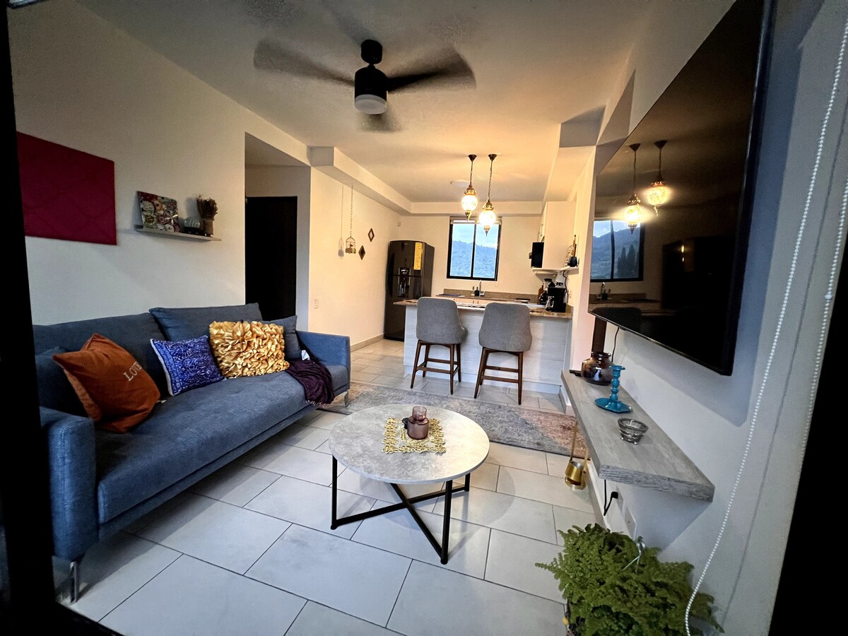 Cálido dairesi, bağımsız erişime sahiptir (merdiven yok). Ticari alanlara, yanardağa, Centro Histórico'ya, Biblioteca Nacional'a ve plajlara erişim için stratejik konum. Bir oturma odası, bir yemek odası ve donanımlı bir mutfağın bulunduğu ince detaylara sahip açık ve aydınlık bir konsept. Çekyatlı (ek bir misafir için), 2 akıllı TV, kablo, wifi, sıcak su, klima çamaşır makinesi/kurutucu, gömme dolap ve iş alanı Rahat bir konaklama arayanlar için özel olarak tasarlanmıştır.