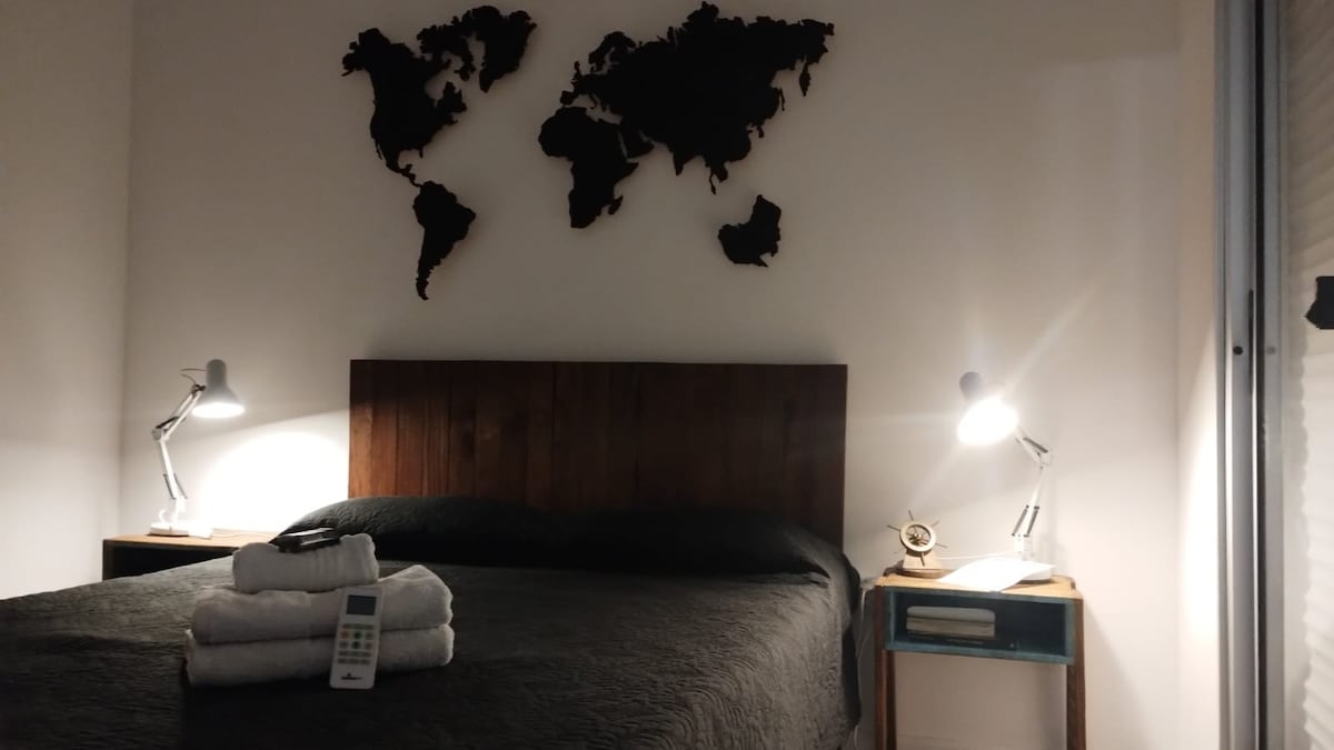 Nevresimleri ve havluları olan çift kişilik yatağı olan bir oturma odasıdır. Ha Mesada, Mikrodalga, Helier, Jarra Eléctrica , tabaklar, çatal bıçak takımları, bardaklar, masa, sandalyeler. Izgaralı arka plan. Özel küçük banyo. Merkezden 10 blok uzaklıktaki Rambla Costanera'da muhteşem bir yer. Mükemmel locomoción. Lugar priviligiado!!!!
