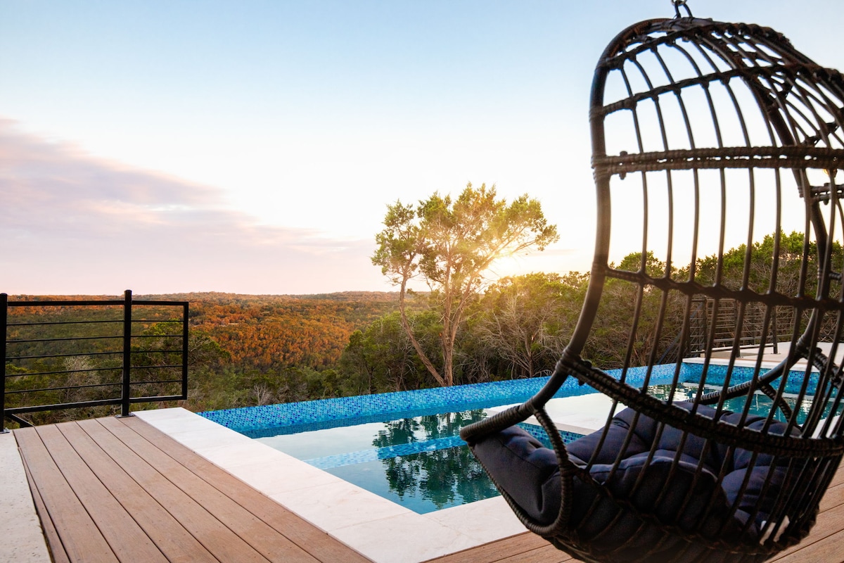 Want to feel as though you're staying in the mountains, but remain local to Texas? This is the spot for you. As you enter the property, you will drive up a hill that winds around a forestry of trees surrounding the property. At the top of the hill, you will be greeted by a modern home towering over the trees to provide an unforgettable view that overlooks rolling hills as far as you can see. It is truly a magical experience offering rest from the daily grind of normal life.