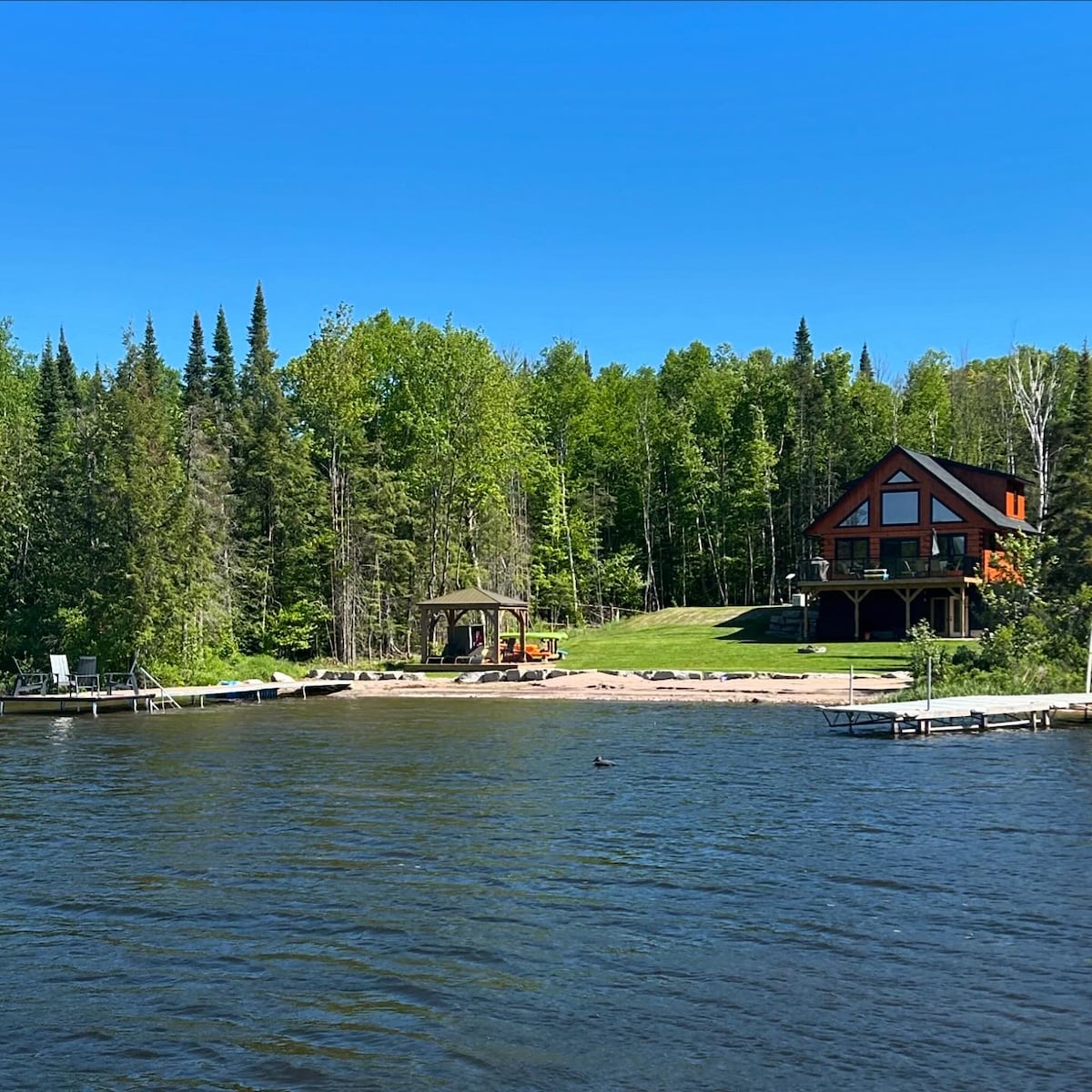 Tüm ailenizi bu özel manzaralı sahil kenarına yeni inşa edilmiş (2022) kulübeye getirin. İnanılmaz 180° güneybatı gün batımı göl manzarası, geniş teras, 200'ün üzerinde özel kumlu plaj, iskele, ateş çukuru. TV ve hava hokeyi ile iki eğlence alanının keyfini çıkarın. Büyük modern özel kuvars mutfak + 2. buzdolabı. Ebeveyn banyolu ana yatak odasından gün batımı manzarası, gömme dolap ve verandaya açılan kapı. Hızlı Starlink internet, ofis, 9 yatak (el yapımı sağlam yataklar). 2 kano, 1 kano ve can yelekleri. Temel malzemeler, yatak takımları ve çöp toplama dahil.