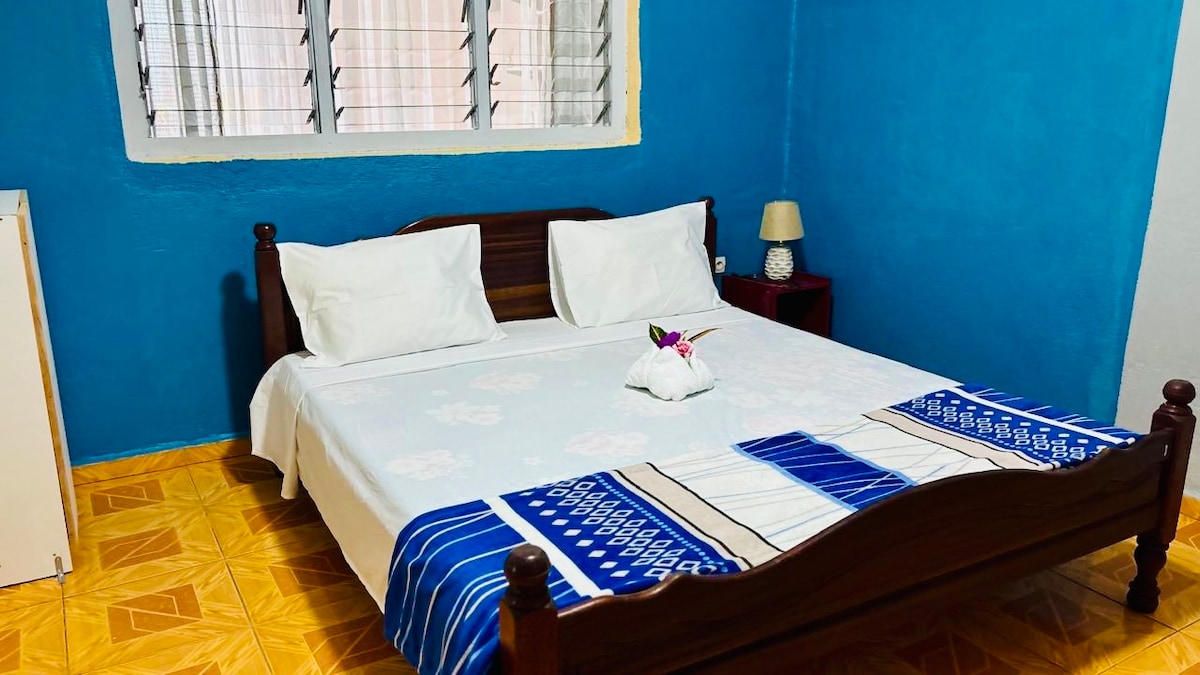 Maison indépendante idéale pour une famille, située à Moroni (Hankounou, rue de la Corniche près du célèbre restaurant l’Escale ), à côté du centre d'imagerie médicale et en face du marché des agriculteurs. Bord de mer, avec terrasse/jardin et bungalow pour repas en extérieur. Cette maison comprend : - Cuisine entièrement équipée - Wi-Fi haut débit - TV écran plat - Climatisation - Détecteur de fumée pour la sécurité Emplacement calme et proche des commerces et attractions