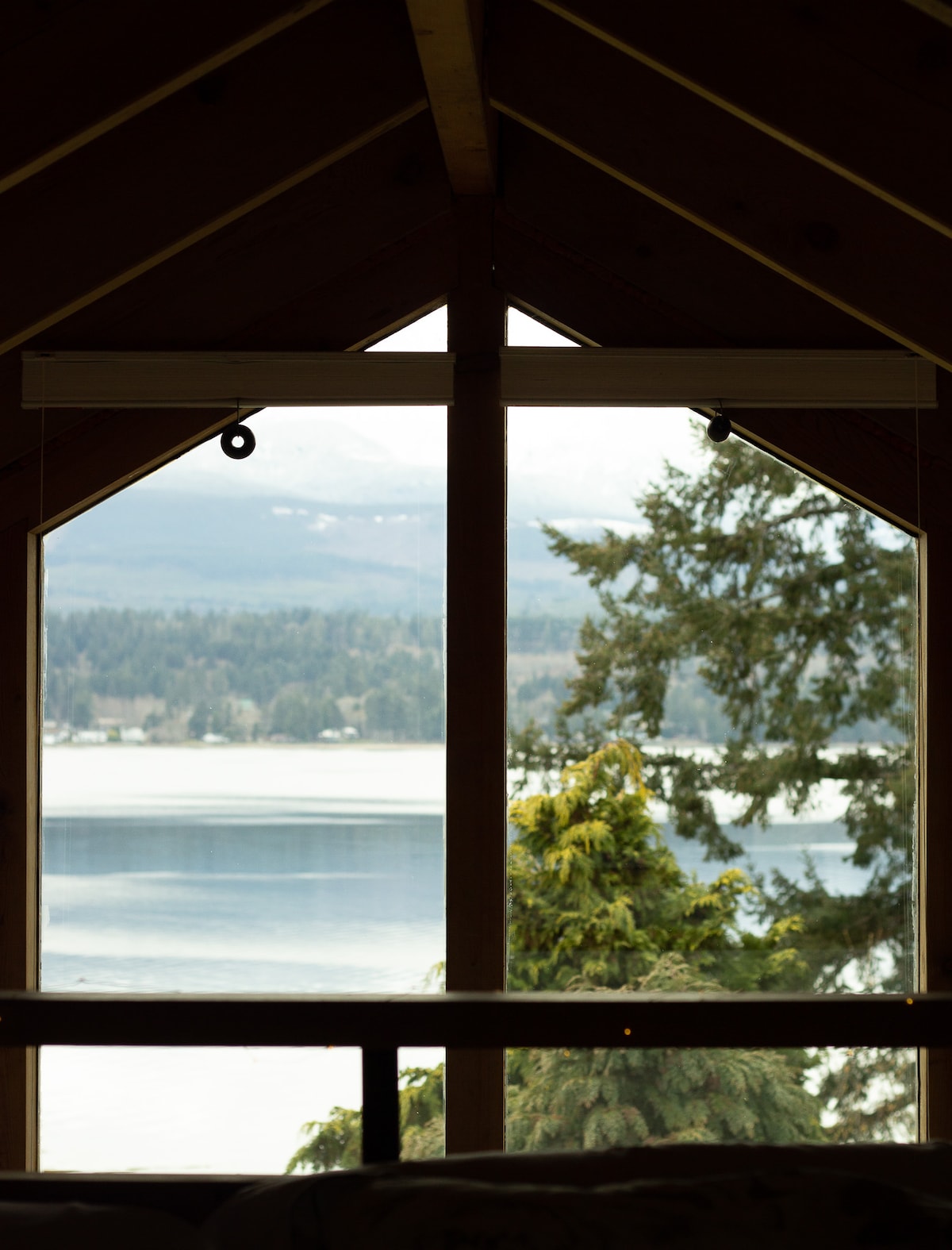 Sessiz bir semtte, Baynes Sound ve Vancouver Adası'nın dağlarına bakan cam cepheli, güzel, özel, klimalı, tonozlu tavanlı bir kulübe. Özel girişe sahip müstakildir. Çatı katında kraliçe yatak, ana katta tek kişilik yatak. Duşlu özel banyo. Plaja özel erişim. Feribota yakın, yerel köye kısa bir yürüyüş mesafesinde. Bu mekânın hareket kabiliyeti sorunları olan kişiler veya küçük çocuklar için uygun olmadığını lütfen unutmayın. TEMİZLİK ÜCRETİ ALMIYORUZ.