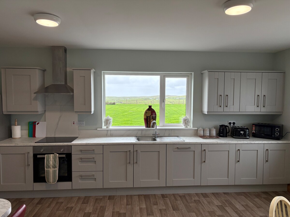 Blind limanına ve Atlantik Okyanusu'na bakan tatil evi. Ev, Vahşi Atlantik Yolu'ndaki Belmullet kasabasına 8 km uzaklıktadır. Yakınlarda birçok bisiklet yürüyüşü olduğu için yürüyüş tatili için mükemmeldir. Ev 1 dönümlük bir arazide yer alır ve güzel plajlara ve Carn golf kulübüne kolay erişimiyle ideal, huzurlu bir inziva yeridir. Ev, 5 kişilik 2 yatak odası, bir ebeveyn banyosu ve bir ana banyodan oluşmaktadır. Geniş bir açık planlı mutfak oturma alanı ve ayrı bir hizmet odası vardır.