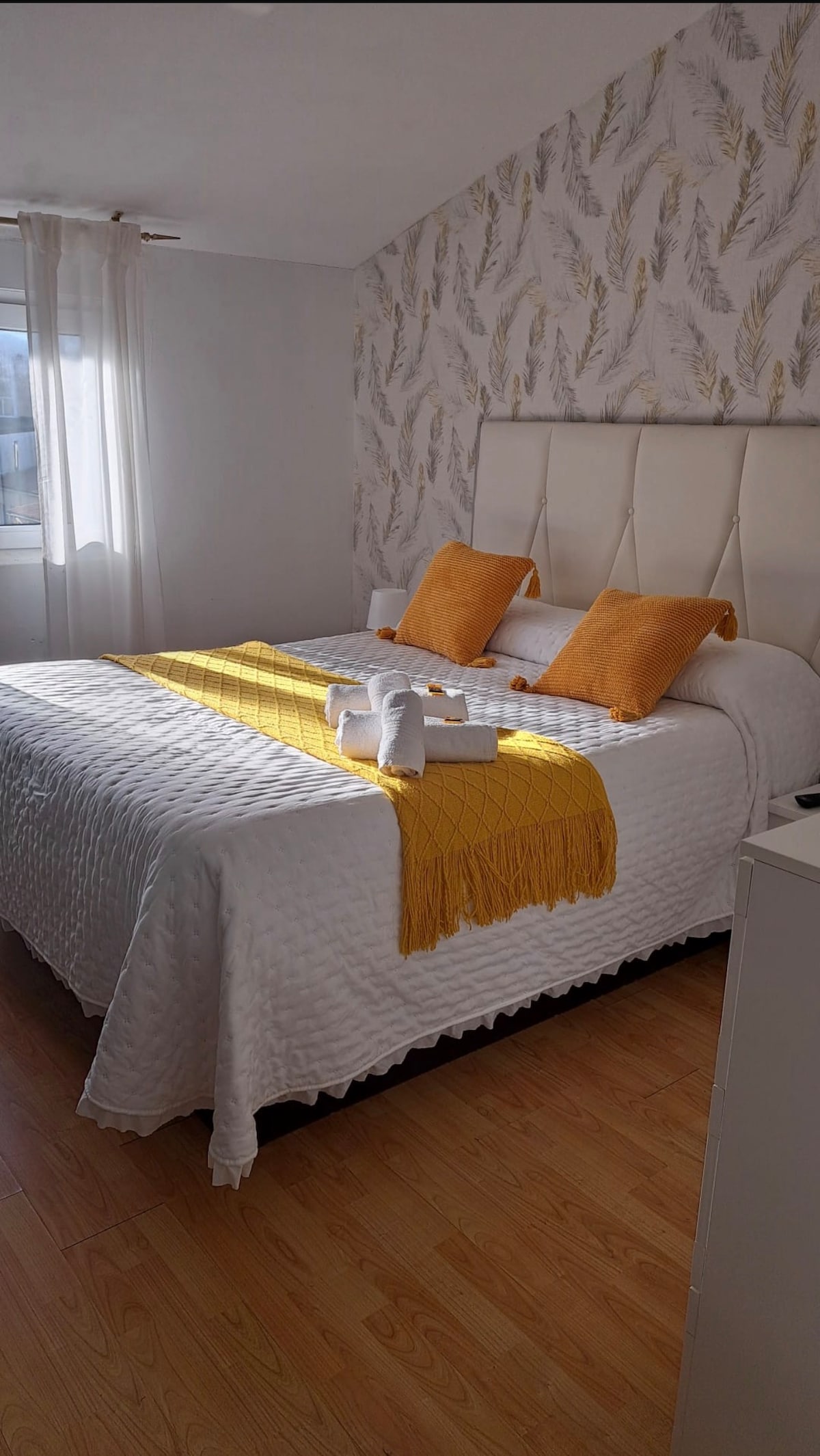 Finisterre'nin merkezinde, eski şehir merkezinde, sakin bir bölgede, süpermarketlere, fırınlara, restoranlara, plajlara ve limana bir dakika uzaklıkta, arabaya binmeden hareket etmek için ideal bir daire. Büyük yataklı bir çift kişilik oda ve iki yataklı (gömme yatak) bir oda olmak üzere iki odası, konforlu bir oturma odası, tüm aksesuarları ve kablosuz internet bağlantısı olan bir mutfağı vardır. Rahatlamak ve keyif almak için idealdir. Çocuklar için uygundur ve evcil hayvanlara izin verilir.