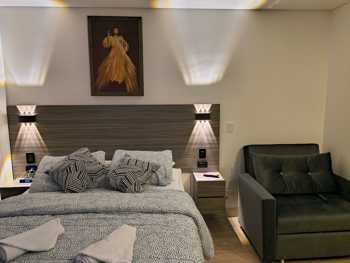 🌆✨ Bienvenido a tu espacio moderno en la ciudad. Ubicado en un edificio nuevo estilo boutique, este apartaestudio combina comodidad, diseño y funcionalidad. Disfruta de cama tipo hotel, sofá cama, WiFi rápido, Smart TV, cocina equipada, lavandería, parqueadero y seguridad 24/7. El edificio ofrece coworking moderno, lobby elegante, áreas sociales inspiradoras y una vista urbana increíble. 🐾 Pet-friendly, perfecto para todo tipo de viajeros. Parqueadero privado valor por noche $20.000