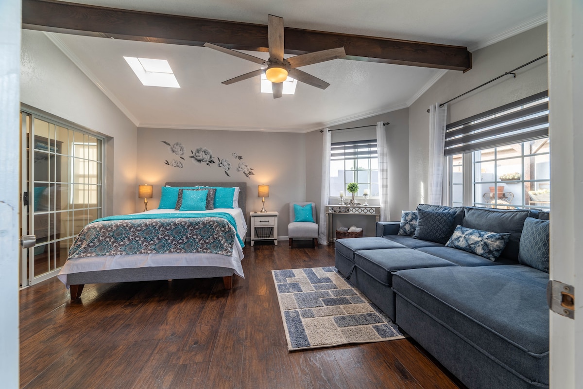 San Diego'da yer alan bu konforlu stüdyo, sessiz ve rahat bir hafta sonu dinlenmesi için mükemmel bir yerdir. Şık geniş stüdyosu, yan kapıdan özel girişi, bbq ve asma hamakları olan özel verandası, garaj yolu park yeri ve bolca sokak park yeri ile iç mekan aydınlık ve davetkar! Verandadan manzara çok rahatlatıcıdır, bu da onu mükemmel bir hafta sonu kaçamağı yapar. Plaza Las Americas'a 5 dakika ve CBX'e 10 dakika mesafede sessiz ve huzurlu bir alanda merkezi konumdadır.