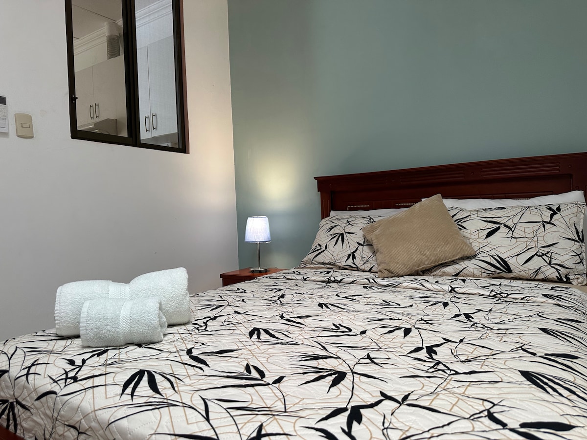 Riverfront 2'deki modern süit – Puerto Santa Ana, nehir manzaralı, eğlence veya iş seyahatleri için ideal. Modern, aydınlık bir alanda çok rahat bir king boy yatak ve bir çekyat bulunmaktadır. Oturma odasında 55 inç ve yatak odasında 40 inç akıllı TV, Netlife kablosuz internet bağlantısı, klima, tam donanımlı mutfak, çamaşır makinesi ve 7 gün 24 saat güvenlik içerir. 🏊💪 Bina saatlerine göre havuz ve spor salonu mevcuttur. 🚗 Caddenin karşısındaki Santana Parkı'nda otopark dâhildir. Wyndham Garden Hotel'in yanında yer alır.