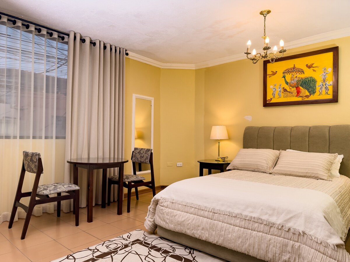 Cotacachi'deki inzivanıza hoş geldiniz! Görkemli Imbabura yanardağı ve yemyeşil vadilerinin muhteşem manzarasına sahip rahat dairemizde unutulmaz bir konaklamanın keyfini çıkarın. Rüya gibi manzaralara uyanın ve doğanın dinginliğini yaşayın. Sükunet ve çevreyle bağlantı kurmak isteyenler için idealdir. Tüm olanaklarla donatılmış bu mekân, Cotacachi'nin güzelliğini dinlenmek ve keşfetmek için mükemmeldir. Maceranız sizi bekliyor!