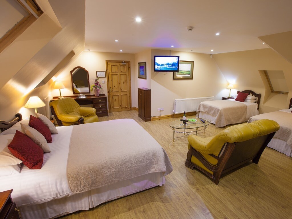 Bu odada özel banyolu bir çift kişilik ve bir tek kişilik yatak vardır. Özel balkonunuzdan Killarney gölleri ve dağlarının manzarasının tadını çıkarın. Oda ve kahvaltı sunulan 3 kişilik diğer odamız 'Dağ Manzaralı' ebeveyn banyolu odadır. Geleneksel tarzda asma kat daireler de mevcuttur, 5 kaydımızın tamamını görmek için lütfen ev sahibi resmimize tıklayın ve aşağı kaydırın. Kahvaltı: Taze sıkılmış portakal suyu, taze meyve, tahıllar, yulaf lapası, yoğurt, taze çiftlik yumurtaları, ev yapımı soda ekmeği ve çörekler, çay ve kahve.
