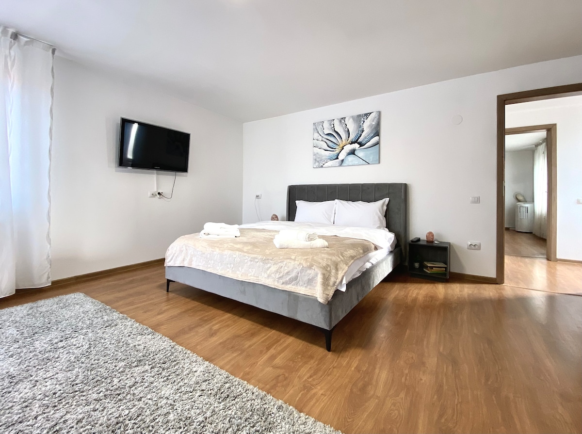 Harika Brașov șehrinde keyifli bir konaklama garanti eden, uluslararası ödüllü bir mimariye sahip bir evin zemin katında sessiz bir alanda bulunan, özel bir tasarıma sahip cömert bir daire. Misafirler ayrı giriș, kendi kendine check-in ve özel erișimli bir İngiliz bahçesinden yararlanır. Aileler ve arkadaș grupları için idealdir.