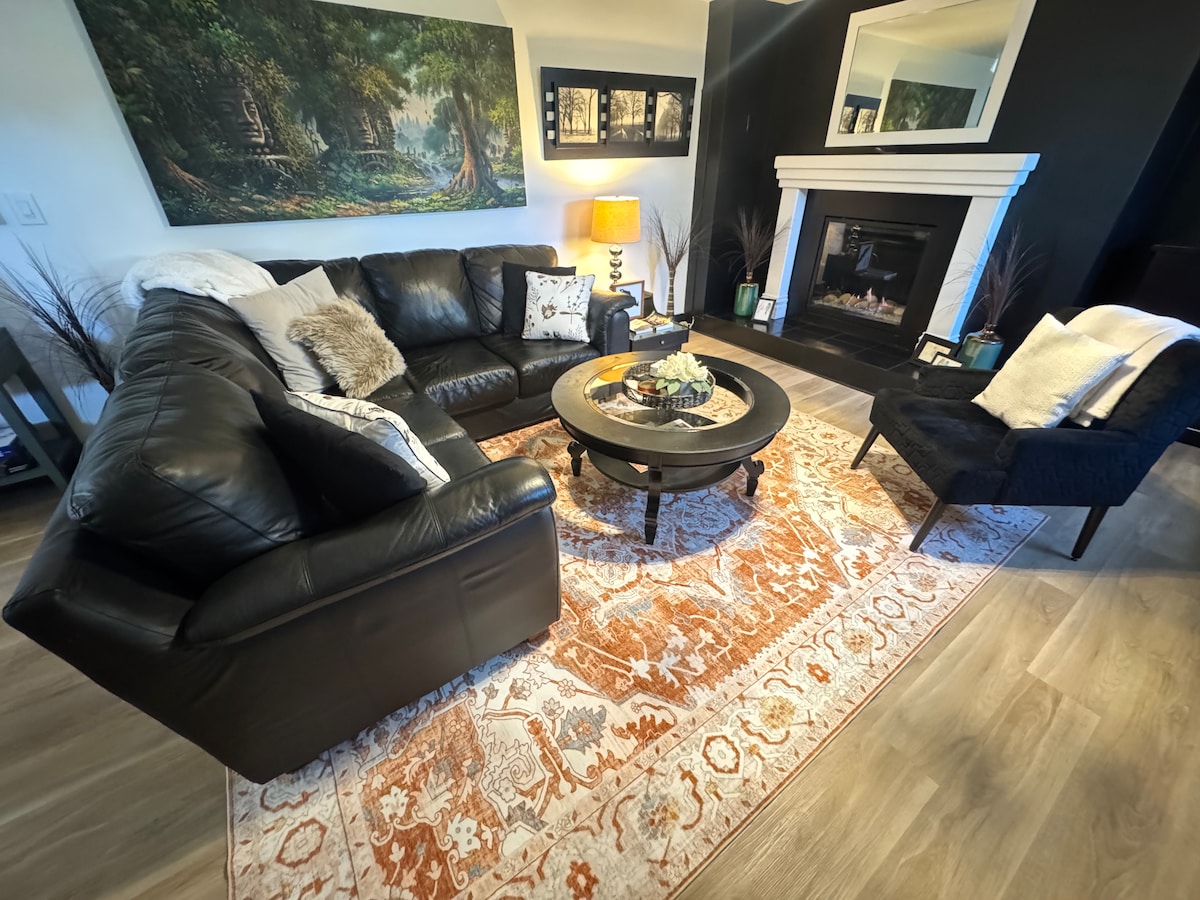 Relaxing, 2-Bedroom,3 bed, retreat in Duncan Spacious 1,100sq foot, suite 1 king bed, bedroom. 1 Queen bed,2nd bedroom. 1 Queen bed, Murphy bed. 3 beds in total. Pet friendly,enjoy a cozy livingroom with a fireplace, a full kitchen,and in-unit washer/dryer. Stay entertained with streaming services 55 inch tv. Board games,make the most of the large BBQ. 4 parking spots Located just 3 minutes from the new hospital and 6 minutes to downtown,this retreat offers comfort,quiet and convenience.
