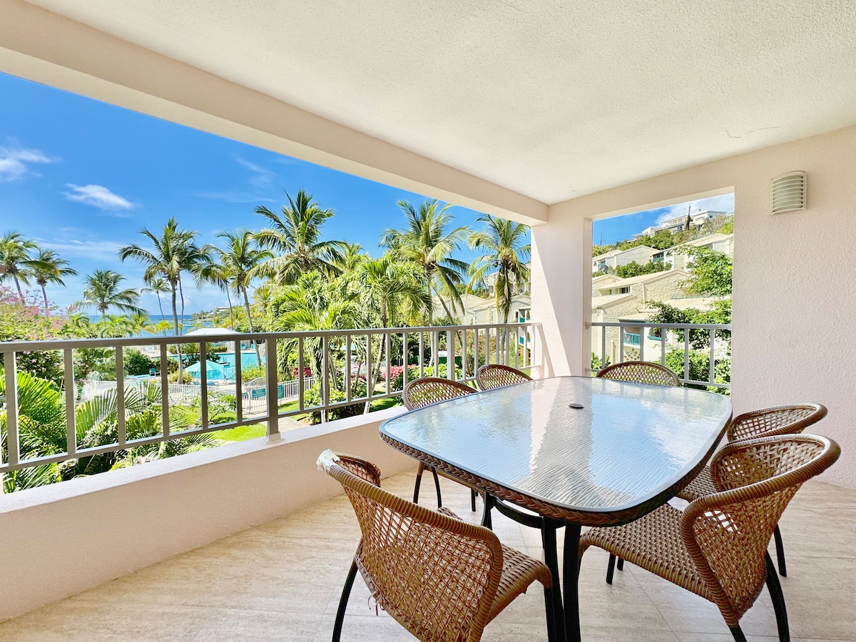 Güzel okyanus manzaralı, Sapphire Village'da balkonlu üst kat stüdyosu iki misafir için mükemmeldir ve queen boy yatağı vardır. Muhteşem manzaralı mutfak ve özel balkon. Sapphire Beach'e beş dakika yürüme mesafesinde, iki büyük havuz, iki harika rahat restoran, kahve dükkanı, taksi durağı ve çamaşırhane. Marinada günlerinizi dolu tutmak için birkaç günlük gezi seçeneği vardır. Yelken gezileri, parasailing veya bir jet ski kiralayın. İhtiyacınız olan her şey mülkte.