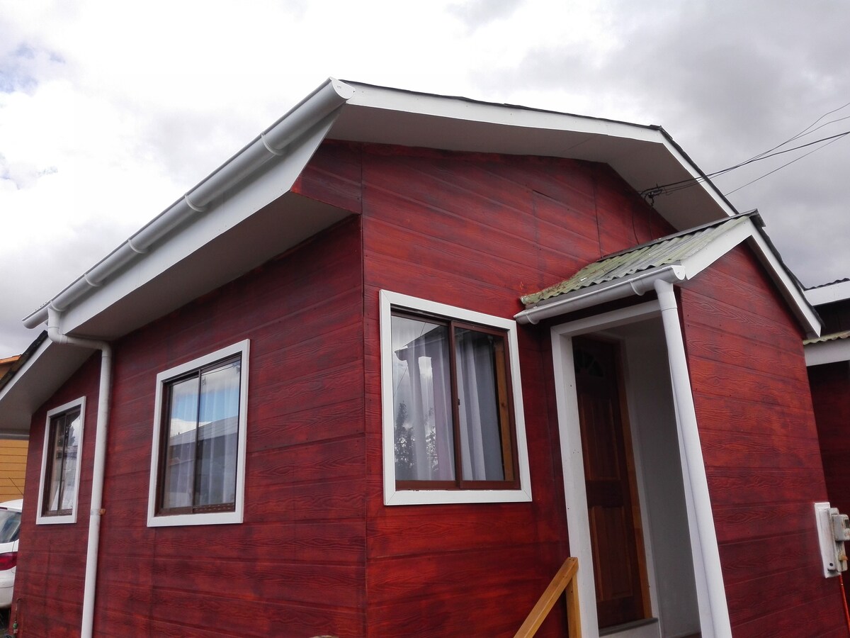 55 m2'lik güzel ahşap kulübe -Martín Pescador- 2 yatak odalı, birinde 2 kişilik çift kişilik yatak ve diğerinde bir buçuk kişilik yatak ve bir kişilik çekyat. Elektrikli radyatörlü ısıtma ve ek merkezi pelet ısıtma. Çamaşır makinesi bulunan geniş banyo. Donanımlı mutfak ve minibar. Isı yalıtımlı mükemmel yapı, ahşap zemin ve tüm pencereler Termopanel. Kişi başı 7.500 Şili pesosu karşılığında mükemmel bir kahvaltı seçeneği.