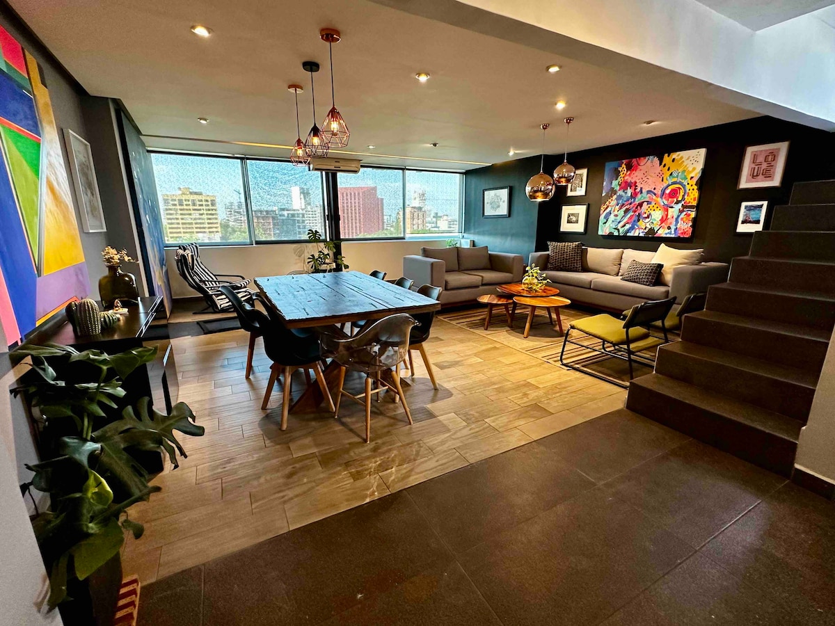 Americana'daki bu çatı katı konfor ve ayrıcalık sunuyor. Chapultepec Bulvarı'na yakın, restoranlar, kafeler, müzeler ve yeşil alanlar var. Zona Americana, 2024 yılında dünyanın en iyi semti olarak kabul edildi. Birkaç adım ötede OXXO, 7-Eleven ve Starbucks gibi mağazaların yanı sıra yürüme mesafesinde tipik, gurme ve uluslararası restoranlar bulunmaktadır. Tarih, sanat ve doğayla dolu sokaklarda kaybolmanızı, ruh ve gelenekle dolu bir köşede kahvenizin tadını çıkarmanızı öneririz.