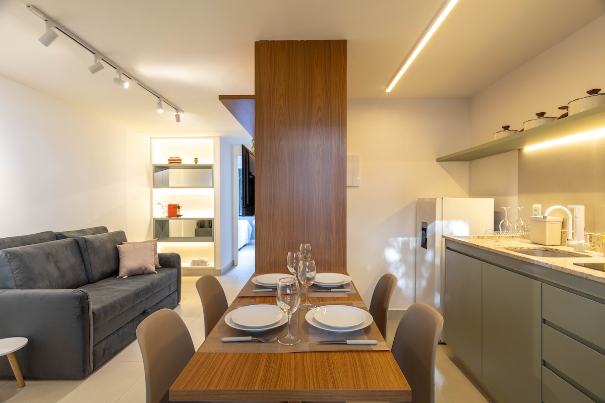Renovated/furnished apartment, with 3 bedrooms and ideal for hosting families or groups of friends. It is in Cruzeiro Novo, 20 minutes from the airport and 15 minutes from Eixo Monumental, which provides access to the main points of Brasília. The property has a full kitchen, new and sophisticated furniture, as well as the appliances and utensils necessary for a cozy stay, such as: 43" TV with streaming, washer and dryer, dishwasher, coffee maker, toaster and air conditioning.