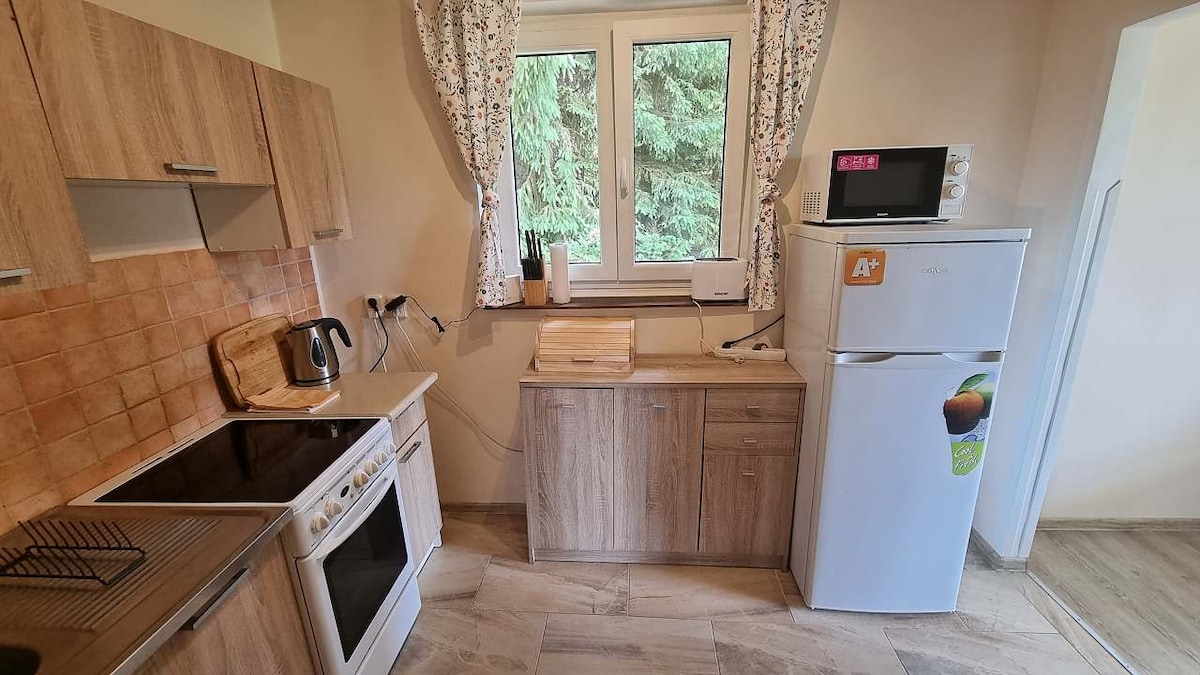 Çek İsviçre Ulusal Parkı'nın kalbinde bir dağ evi sunuyoruz. Arnoltice köyünün eteklerinde bulunan kulübe, ormanın eteklerindeki konumu sayesinde hem huzurlu bir dinlenme ve rahatlama hem de aktif bir tatil geçirmenizi sağlar. Kiralık kulübe, 3 yatak odasında 1 ila 6 kişi için konaklama imkanı sunmaktadır. Tam donanımlı bir mutfağın yanı sıra WIFI ve SMART TV bulunmaktadır. Otopark binanın hemen yanında. Kulübe, tüm binaya dağıtım yapan elektrikli kazan veya odun şöminesi ile ısıtılmaktadır.