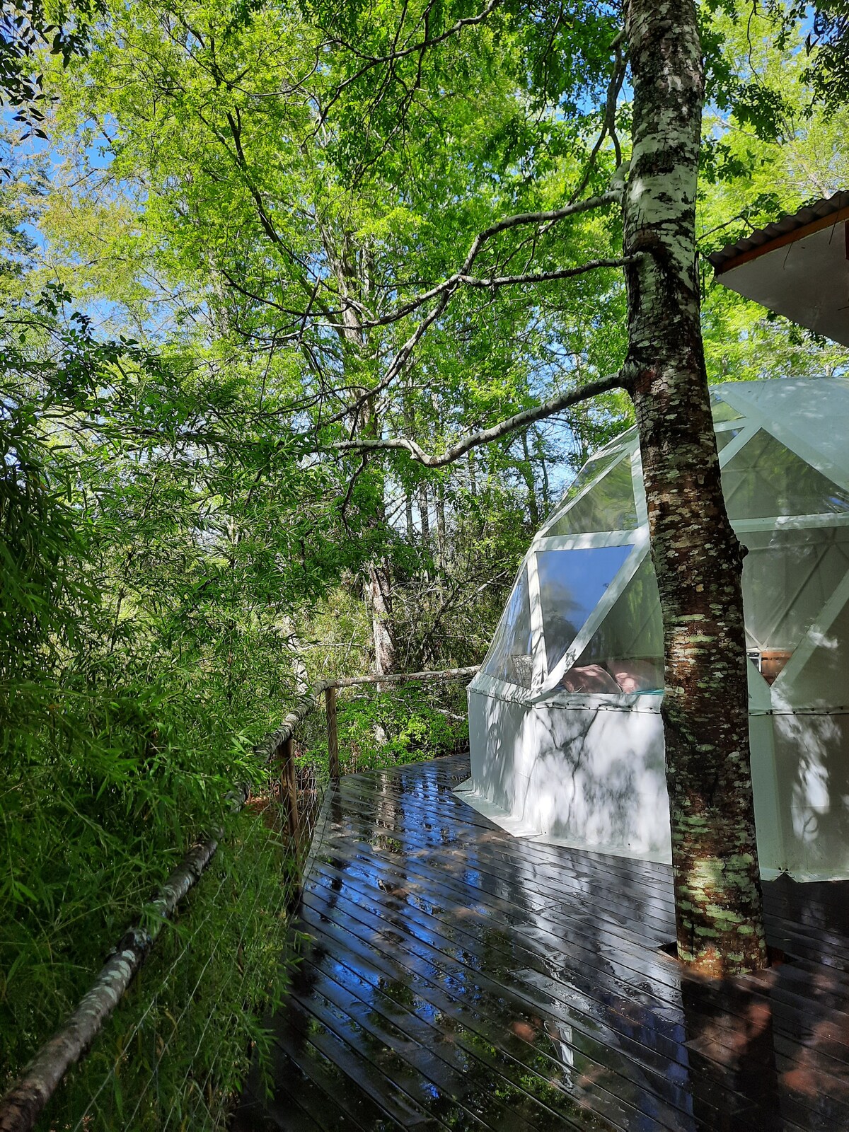 Domos Conguillío, Melipeuco'yu çevreleyen doğal ortamın sunduğu açık hava etkinliklerini, tamamen özel bir kapalı alanda, Melipeuco kasabasına 2 km uzaklıktaki yerel bir orman bahçesine yerleştirilmiş Glamping kulübeleri ve kubbelerinin (cazibeli kamp) sağladığı hak edilmiş dinlenme ile, Melipeuco'yu çevreleyen doğal ortamın sunduğu açık hava etkinliklerini birleştirmek isteyen bir aile işletmesidir. Kubbe Glamping, mutfak salonu, özel banyo ve çepeçevre terası ile müştemilatıyla ağaçlar arasında inşa edilmiştir.