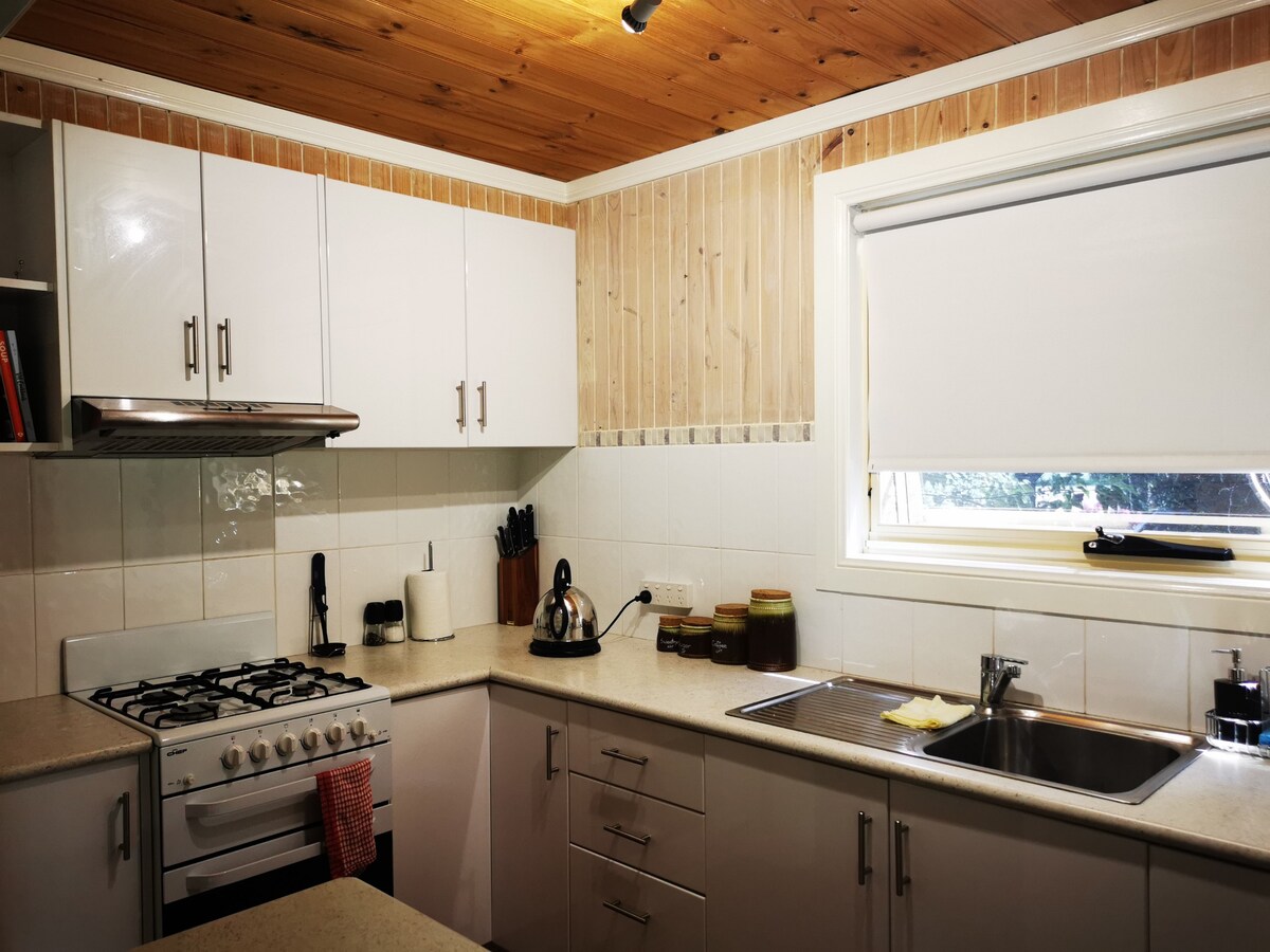 100 yıldan eski orijinal bir yün deposunda dinlendirici bir konaklamanın tadını çıkarın! 100 dönümlük mülkümüzde yer alan yün deposu, ana konuttan uzaktadır, böylece arazide bulduğunuz mahremiyetin ve huzurun tadını çıkarabilirsiniz. Mekânın özellikleri şunlardır: tam mutfak, geniş yaşam/yemek alanı, TV/kablosuz internet bağlantısı, yaşam alanında tavan vantilatörleri, yeni inşa edilmiş uyku alanı ve queen boy yataklı banyo ve ters çevrim. Uber/Taksi mevcut, CBD'ye 16 km. * Şömine çalışmıyor. Sadece yetişkinler, hayvan kesinlikle yasaktır.