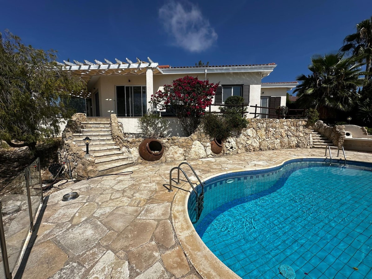 Peyia taş villa özel havuzlu ve deniz manzaralı