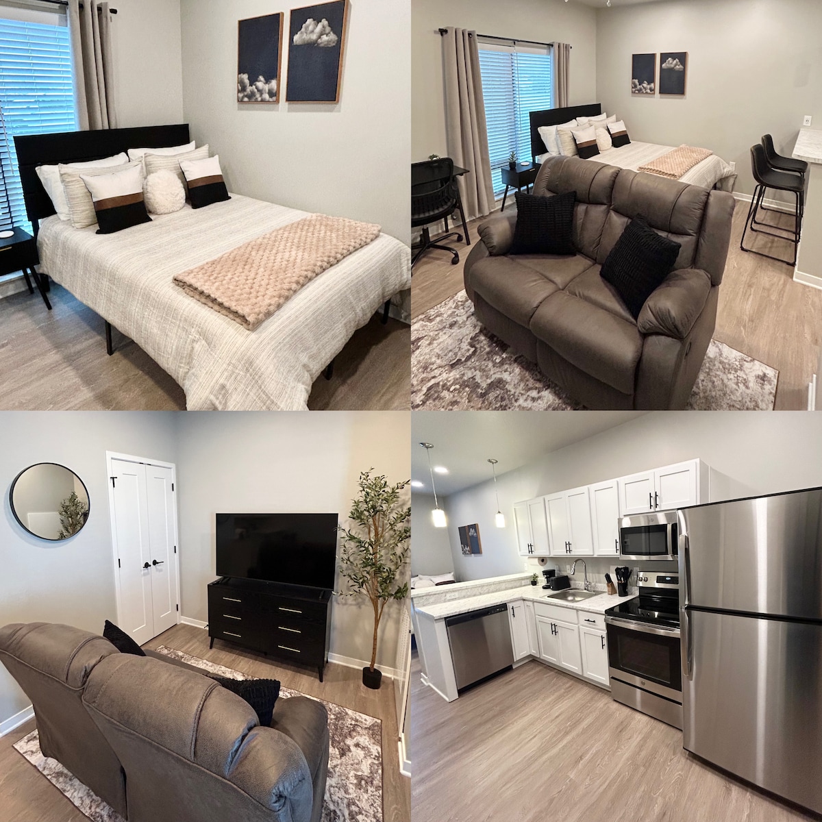 Bu 2 yatak odalı/2 banyolu son ünite doğal ışıkla doludur. İş veya aile gezginleri için mükemmel bir yer. Bu ferah tasarım size nefes almak için bolca alan bırakacak. Büyük boy ada/kahvaltı barı, tam boy çamaşırhane, king boy yatak, 2 tam boy yatak ve geniş bir oturma odası bulunmaktadır. Gelin, evinizden uzaktaki bir sonraki evinizin tadını çıkarın ve gerisini bize bırakın. Bu ünitede ayrıca bir araba garajı ve sınırsız otopark, ücretsiz YouTube TV ile ünitede yüksek hızlı kablosuz internet bağlantısı ve şef hazır mutfaklar bulunmaktadır.