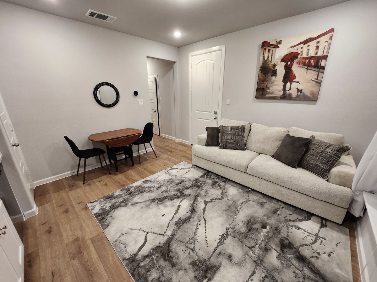 Ana evin hemen dışında özel girişi olan 750 SQ ft'lik özel bir dairenin keyfini çıkarın. 1 yatak odası + 1 banyo – oturma odası ve arka bahçeye açılan özel kapısı olan granit tezgahlı tam donanımlı mutfak. DFW Havaalanı'na 10 dakika ve Southwest Love Field'a 12 dakika uzaklıktadır. Yeni Irving Kongre Merkezi, Toyota Müzik Fabrikası, Las Colinas, Four Seasons (önceki Byron Nelson Evi) gibi sayısız restoran, alışveriş ve çok daha fazlası ile çok sayıda cazibe merkezine yakındır.