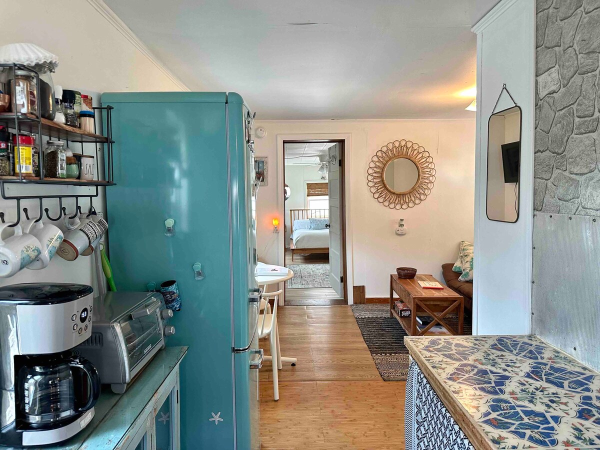 Outer Banks'te küçük bir ev... Parlak, ve modern... 2 kişi için mükemmel! - En yumuşak nevresimlerle rahat yatak - Ocak, bulaşık makinesi, buzdolabı, tencere, tava, mutfak gereçleri, French Press, Keurig, çaydanlık, çaydanlık, bar aksesuarları ile dolu mutfak. - Lüks fayanslı duş/banyo. - Arka verandadaki vintage ayaklı küvette dinlenin. - Gazlı ızgara, ateş çukuru ve hamak ile donatılmış 10x16 veranda - Açık hava duşu. - Akıllı televizyon - Bisiklet, kano, sörf tahtası, kürek tahtası, yeti soğutucu, plaj sandalyesi ve şemsiye.