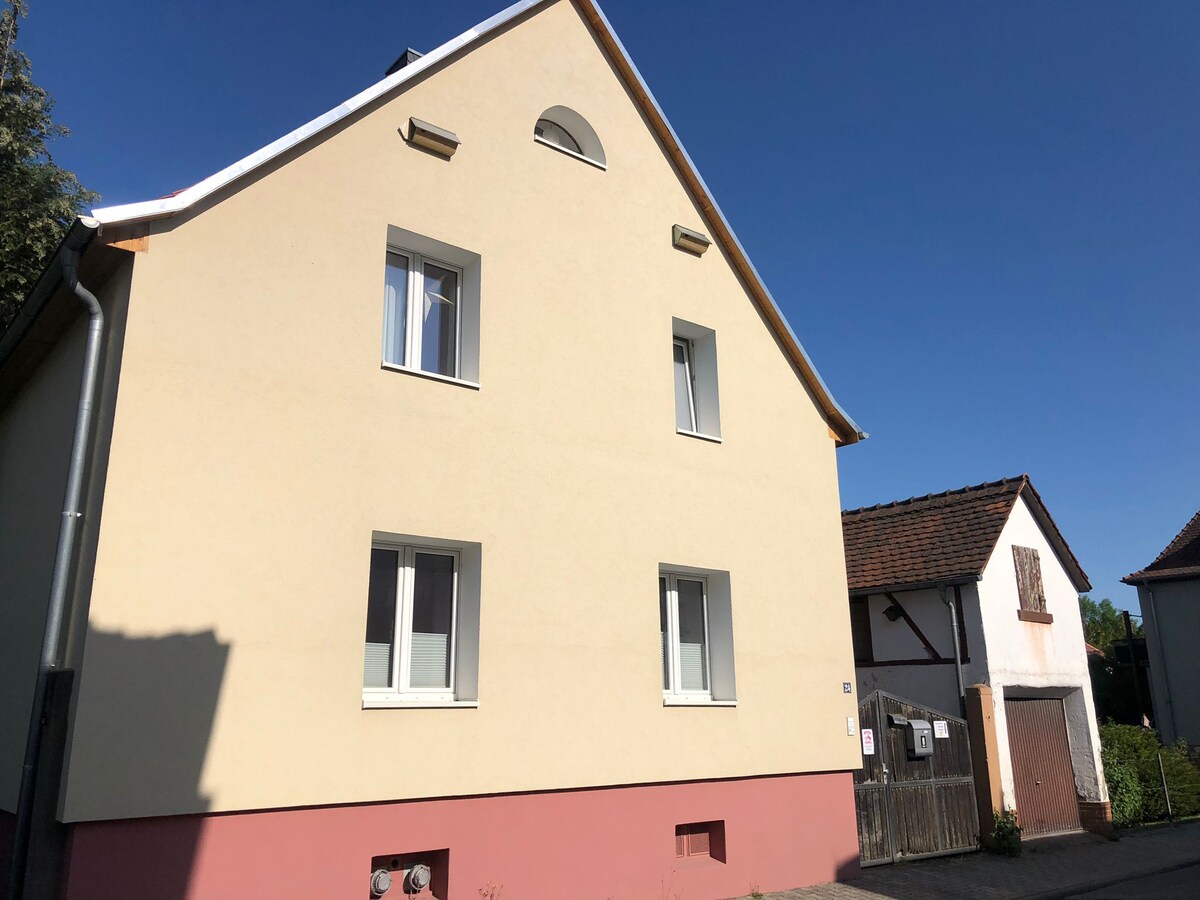 İster aile toplantısı ister arkadaş grubu olsun, güzel bahçesi, saunası, şöminesi, terası ve harika manzarasıyla bu ferah, doğaya yakın kır evi villasında günlük hayatınızı bırakıp harika bir zaman geçirebilirsiniz. Ren-Main bölgesinin kalbinde kaleler, şatolar ve üzüm bağlarıyla çevrili. A5/A67 otoyoluna mükemmel bağlantı. 200 m²'lik bir alanda 5 oda, 2,5 banyo, mutfak, balkon, salon ve yemek alanı bulunmaktadır. Köpekler kabul edilir. Süpermarket ve açık yüzme havuzu 2 km uzaklıkta.