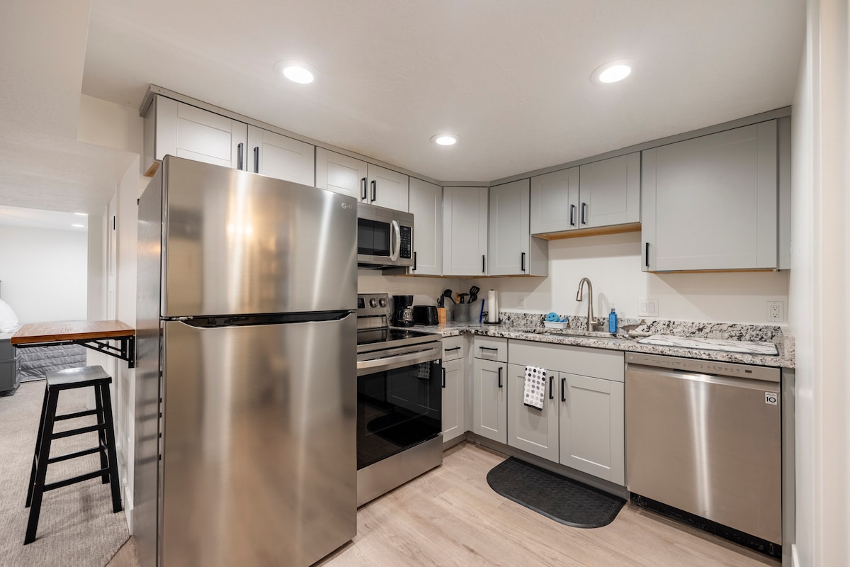 Salt Lake City'nin göbeğindeki modern ve konforlu 1 yatak odalı dairenin keyfini çıkarın. Geniş bir çift kişilik yatakta rahatlayın, hızlı kablosuz internet bağlantısıyla yayın keyfini çıkarın ve tam donanımlı bir mutfakta yemek pişirin. İş seyahatleri, hastane ziyaretleri, konserler, kayak veya şehri keşfetmek için mükemmel. Trax, yemek, kahve dükkanları, barlar ve önemli turistik yerlere yürüyün. Bu yenilenmiş birim kolay otopark, güvenli giriş ve yoğun günlerden sonra gevşemek için huzurlu bir alan sunuyor.